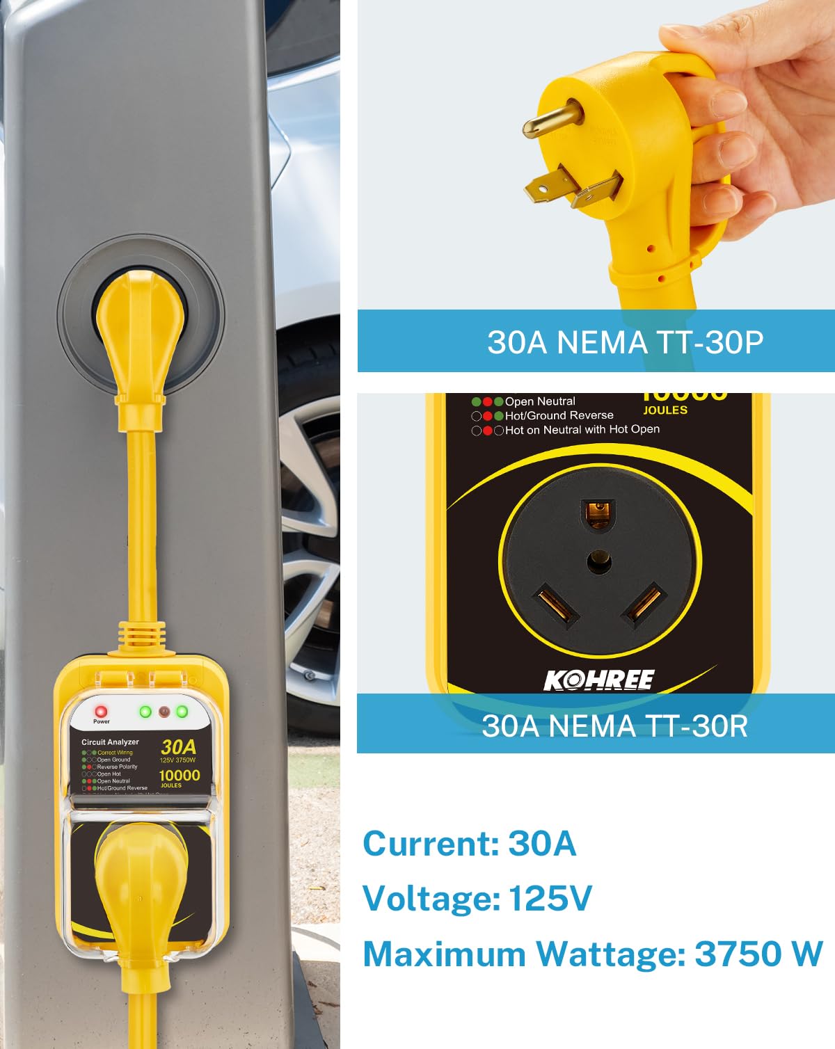 Kohree Rv Surge Protector 30 Amp With Waterproof Cover, 10000 Joules 30 Amp Rv Surge Protector For Rv Camper, All-In-1 Circuit A