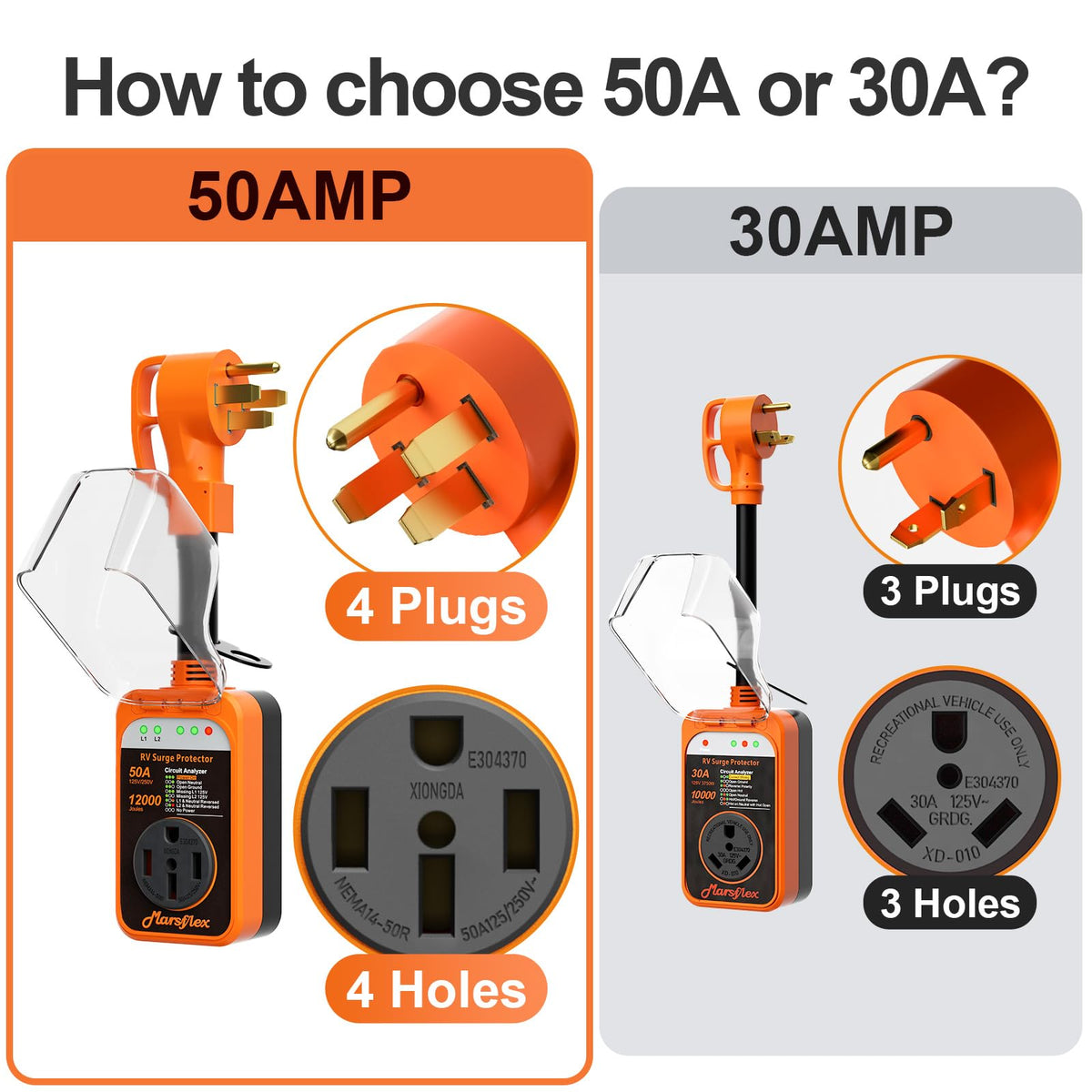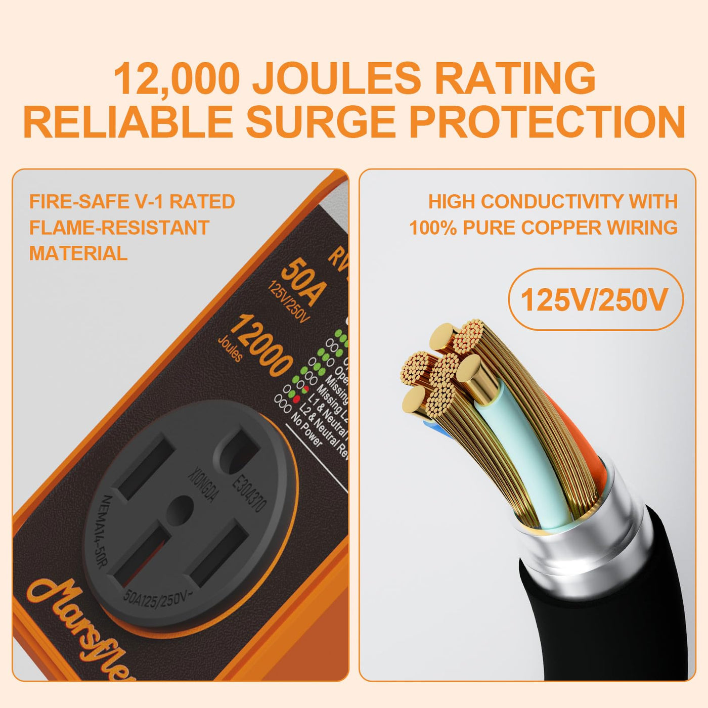 Marsflex Rv Surge Protector, 50Amp Rv Circuit Analyzer, 12000 Joules Surge Guard Protection With Waterproof Cover, Led Display,