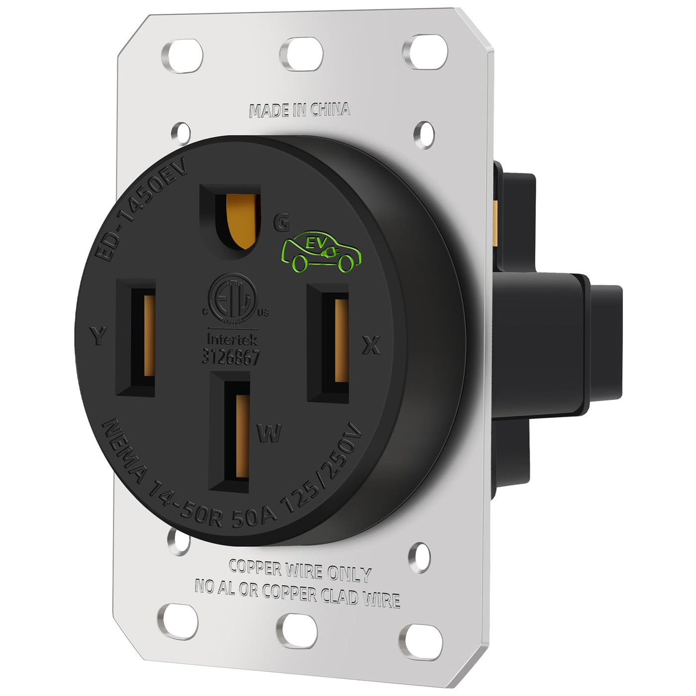 NEMA 14-50 Outlet for EV Charging,50 Amp EV Charging Receptacle,14-50R EV Outlet,50 Amp Straight Blade Device Receptacle,3-Pole