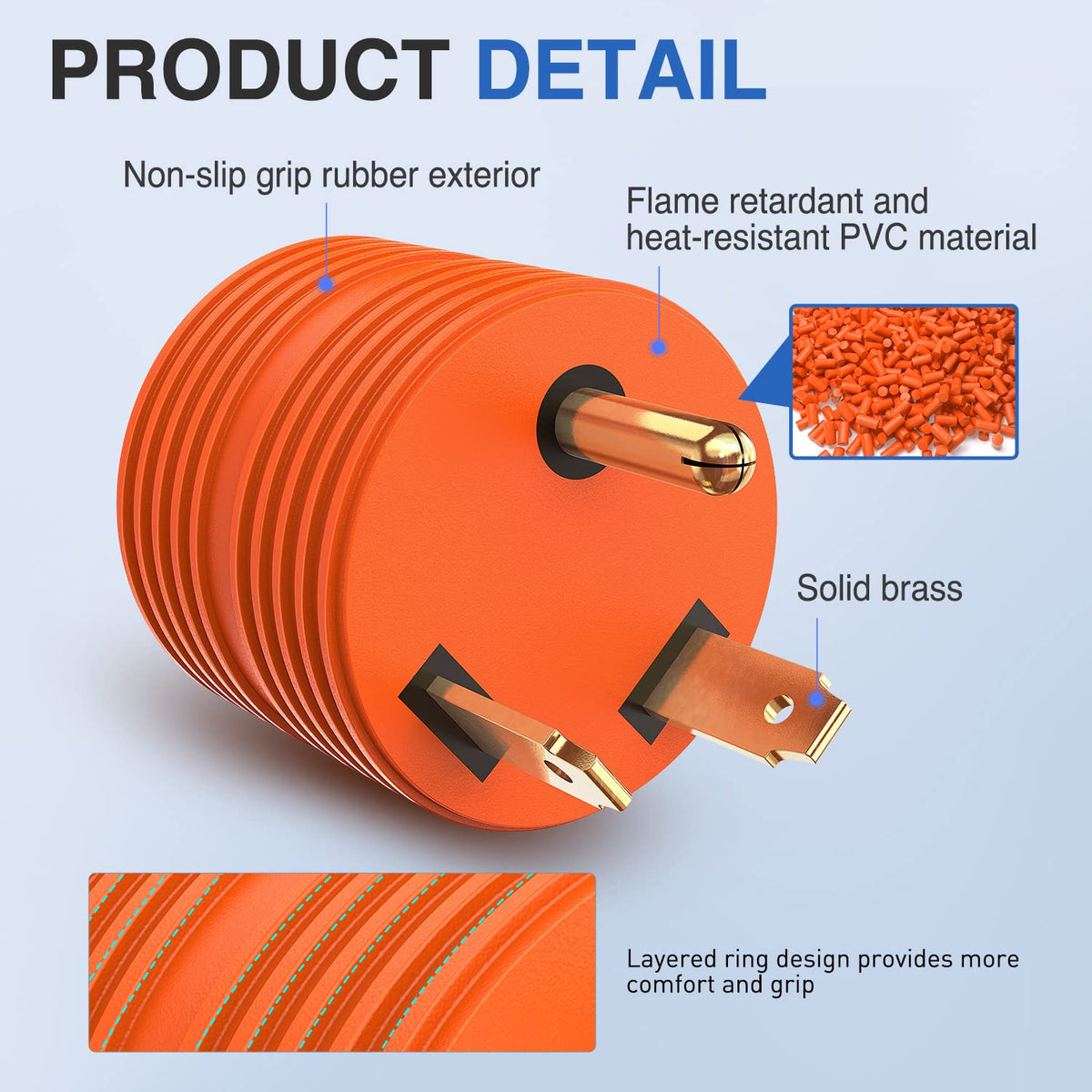 Q: How durable is the Nilight RV power adapter?A: The adapter is constructed with flame retardant and heat-resistant PVC material, making it sturdy, pressure-proof, and durable for long-term use in various environments.