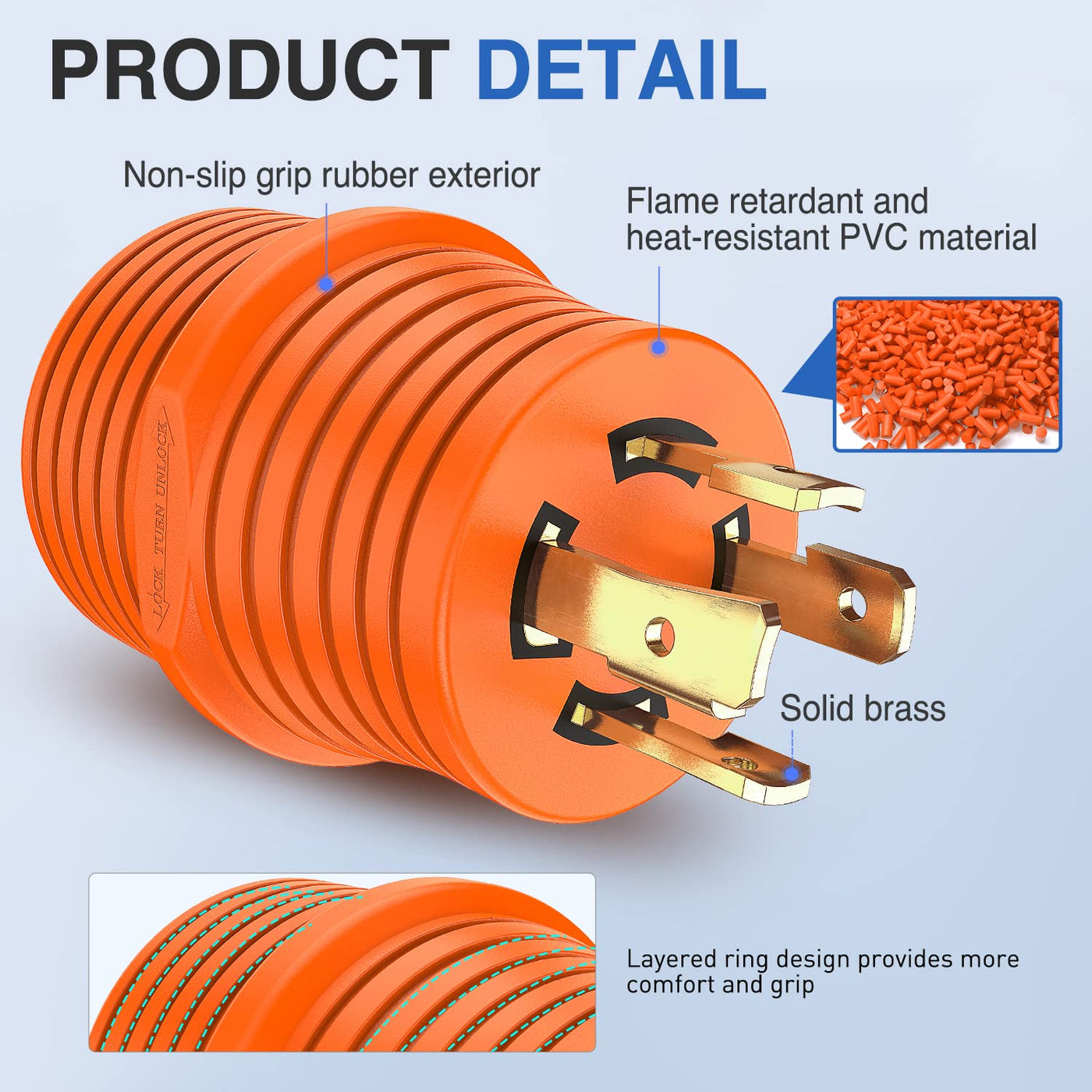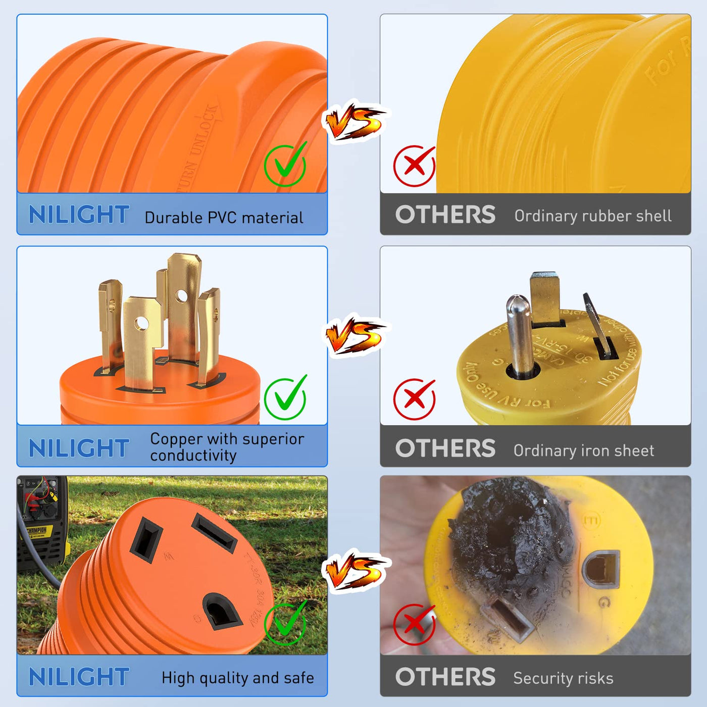 Nilight 30 Amp To 30 Amp Rv Power Adapter 4 Prong Locking Plug 125 Volt Heavy Duty Converter L14-30P To Tt-30R 30A Male Plug To