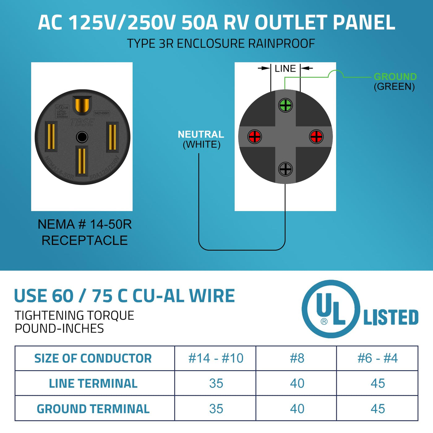 Paulinn 50 Amp Rv Outlet Box, Nema 14-50R Outlet 125/250 Volt Rv Plug W/Anti-Theft Lockable Swing Cover, Ul Listed & Weatherproo