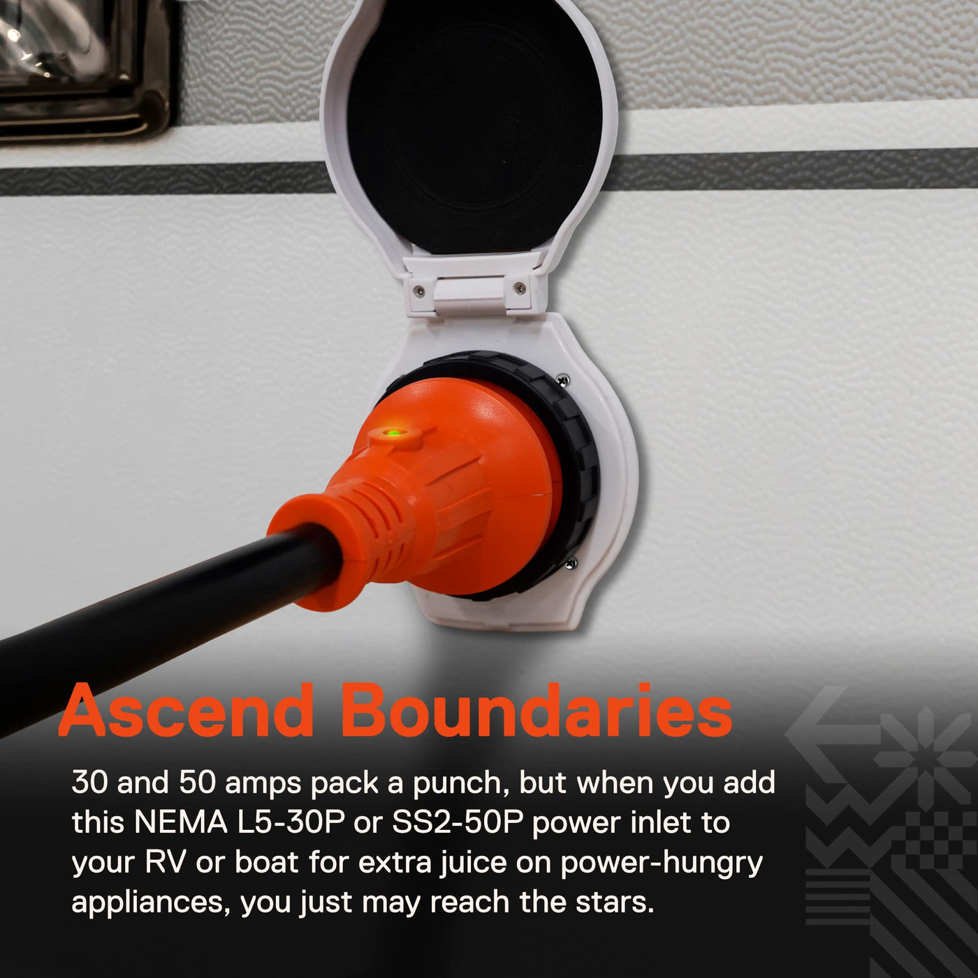 Trust That Our Engineers Worked Tirelessly To Provide A Power Inlet With Nema L5-30P Or Ss2-50P Socket That Will Dominate For Shore Supply Or Camping Juice. First, We Ensured The Inlet Was Uv Resistant To Avoid Long-Term Degradation And To Keep The Product In Tip-Top Shape. An Easy Wiring Construction Also Allows You To Effortlessly And Independently Install The Power Wires. Lastly, A 1.25' Low Profile Helps The White Inlet Blend In And Belong.