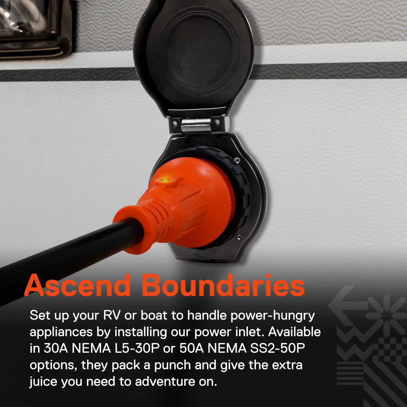 Jolt for 30/50A AppliancesRV owners, camper drivers & boat enthusiasts are making their next outdoor trip a drag without True Mods' 30 or 50 amp, 125V & 125/250V power inlet! 30 or 50 amps provide a boatload of power, so provide an energy jolt at the campsite or coast. This inlet offers ample energy for a microwave, a fridge, or even a large entertainment center with 50A! Yes, the teenagers can even charge phones as you enjoy brewing a steaming pot of Joe.Designed to DominateTrust that our engineers worked tirelessly to provide a power inlet with NEMA L5-30P or SS2-50P socket that will dominate for shore supply or camping juice. First, we ensured the inlet was UV Resistant to avoid long-term degradation and to keep the product in tip-top shape. An easy wiring construction also allows you to effortlessly and independently install the power wires. Lastly, a 1.25'' low profile helps the white inlet blend in and belong.Safe Addition to Electrical SystemWhen it comes to electricity, take caution with what you trust to power the family vacation. Outdoor fanatics can't do any better than our inlet's dust/waterproof design! The stylish cover lid keeps contaminants out of the system so you can relax and enjoy. A twist-lock design ensures a solid connection and an LED indicator informs of the connection. An ETL certification also backs this product and proves a smart purchase.Features30A 125V or 50A 250V Power Inlet10/3AWG or 6/3+8/1AWG CompatibleDust/Waterproof DesignUV Resistant HousingETL Certified What's Included?RV Inlet SocketPack of 4pc Mounting ScrewInstruction Manual