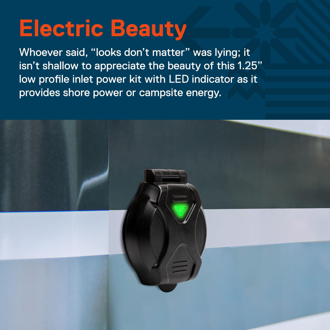 Jolt for 30/50A AppliancesRV owners, camper drivers & boat enthusiasts are making their next outdoor trip a drag without True Mods' 30 or 50 amp, 125V & 125/250V power inlet! 30 or 50 amps provide a boatload of power, so provide an energy jolt at the campsite or coast. This inlet offers ample energy for a microwave, a fridge, or even a large entertainment center with 50A! Yes, the teenagers can even charge phones as you enjoy brewing a steaming pot of Joe.Designed to DominateTrust that our engineers worked tirelessly to provide a power inlet with NEMA L5-30P or SS2-50P socket that will dominate for shore supply or camping juice. First, we ensured the inlet was UV Resistant to avoid long-term degradation and to keep the product in tip-top shape. An easy wiring construction also allows you to effortlessly and independently install the power wires. Lastly, a 1.25'' low profile helps the white inlet blend in and belong.Safe Addition to Electrical SystemWhen it comes to electricity, take caution with what you trust to power the family vacation. Outdoor fanatics can't do any better than our inlet's dust/waterproof design! The stylish cover lid keeps contaminants out of the system so you can relax and enjoy. A twist-lock design ensures a solid connection and an LED indicator informs of the connection. An ETL certification also backs this product and proves a smart purchase.Features30A 125V or 50A 250V Power Inlet10/3AWG or 6/3+8/1AWG CompatibleDust/Waterproof DesignUV Resistant HousingETL Certified What's Included?RV Inlet SocketPack of 4pc Mounting ScrewInstruction Manual