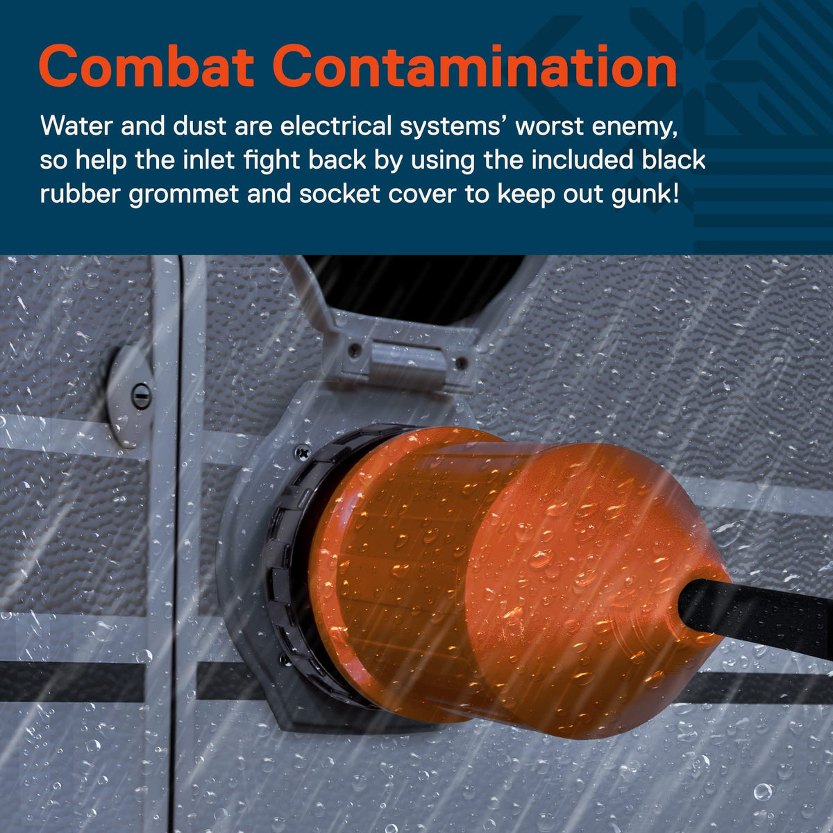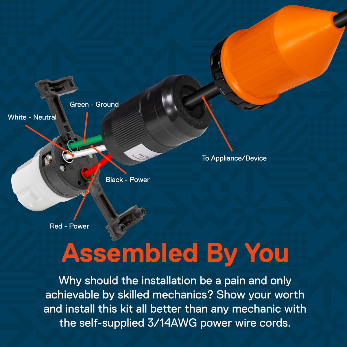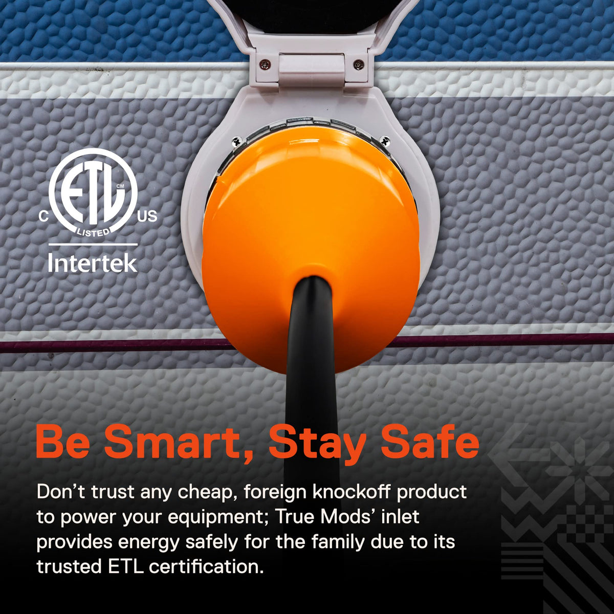 Jolt for 30/50 Amp AppliancesRV owners, camper drivers and boat enthusiasts are making their next outdoor trip a drag without True Mods' 30 or 50 amp, 125V power connector! 30 or 50 amps provide a boatload of power, so provide an energy jolt at the campsite or coast. This cord plug provides ample energy for a microwave, a fridge, or even a large entertainment center with 50A! Yes, the teenagers can even charge phones as you enjoy brewing a steaming pot of Joe.Designed to DominateTrust that True Mods' engineers worked tirelessly to provide a power cord plug with NEMA L5-30P or SS2-50P socket that will dominate for shore supply or camping juice. Heavy duty PVC material ensures that this product was made with quality as the upmost priority. An easy wiring construction also allows you to effortlessly and independently install the power wire cords. Safe Addition to Electrical SystemWhen it comes to electricity, take caution with what you trust to power the family vacation. Ready-to-plug cords can't compete with our connector's dust/waterproof, twist locking boot cover! The stylish cord cover and ring keeps contaminants out of the system better than the alternative. Ready-to-plug cords also aren't the most reliable around abuse; a twist lock design ensures a solid connection even if bumped by wild kids. An ETL certification lastly backs this product and proves a smart buy.Features30/50 amp, 125V power cord10/3AWG or 6/3 +8/1AWG compatibleTwist lock cover bootETL certified What's Included?50A Female Socket50A Twist Lock Ring CoverInstruction Manual