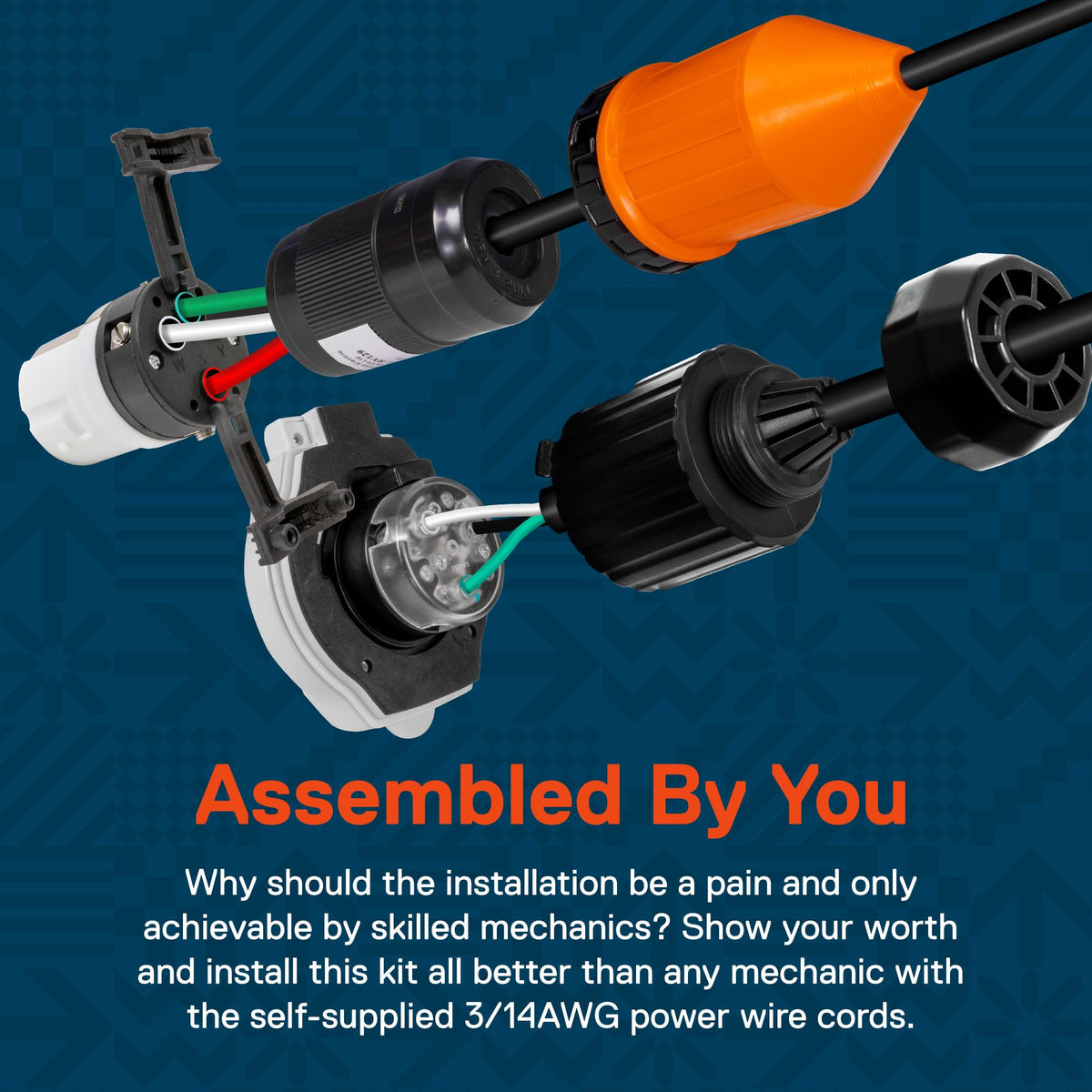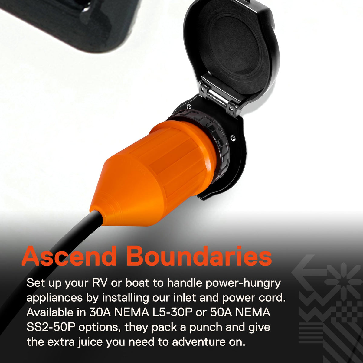 Jolt for 30/50 Amp AppliancesRV owners, camper drivers and boat enthusiasts are making their next trip a drag without True Mods' 30 or 50 amp, 125V & 125/250V power inlet and connector combo kit! 30 or 50 amps provide a boatload of power, so provide an energy jolt! This kit adds ample energy for a microwave, a fridge, or even a large entertainment center with 50A! Yes, teenagers can charge phones as you brew a steaming pot of Joe.Designed to DominateTrust that True Mods' engineers worked tirelessly to provide a combo kit with NEMA L5-30P or SS2-50P socket that will dominate for shore supply or camping juice. We ensured the inlet was UV Resistant to avoid long-term degradation. A 1.25'' low profile helps the white inlet blend in. Heavy-duty PVC material ensures the cord was made with quality as the upmost priority. An easy wiring construction allows an effortless and independent install.Safe Addition to Electrical SystemTake caution with what you trust to power the family vacation. Ready-to-plug cords can't compete with our kit's dust/waterproof, twist-locking boot cover and inlet! The stylish cord cover, ring and lid cover keep contaminants out better than the alternative. A twist-lock design ensures a solid connection even if bumped by wild kids and the inlet's LED indicator also informs of the connection. An ETL certification lastly backs this smart product.Features30A 125V or 50A 250V Combo Kit10/3AWG or 6/3+8/1AWG CompatibleDust/Waterproof Locking Boot CoverUV Resistant InletHeavy Duty PVC ConstructionETL Certified What's Included?RV Inlet Socket50A Female Socket50A Twist Lock Ring CoverPack of 4pc Mounting Screw(2) Instruction Manual