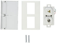 Receptacle with one F-jack and one modular telephone plug. F-jack accepts standard coax connectors, telephone jack has modular output and screw connections on input. White.