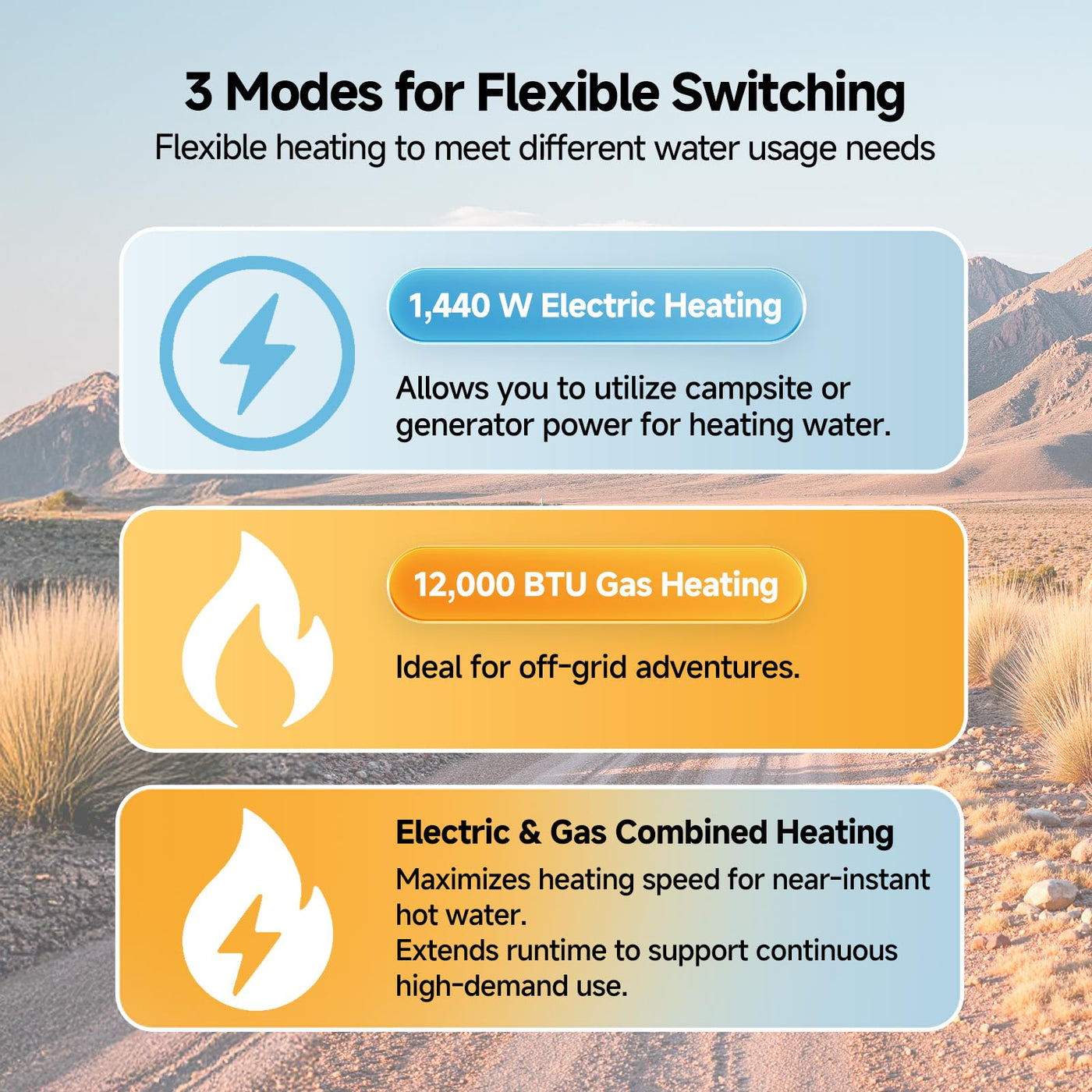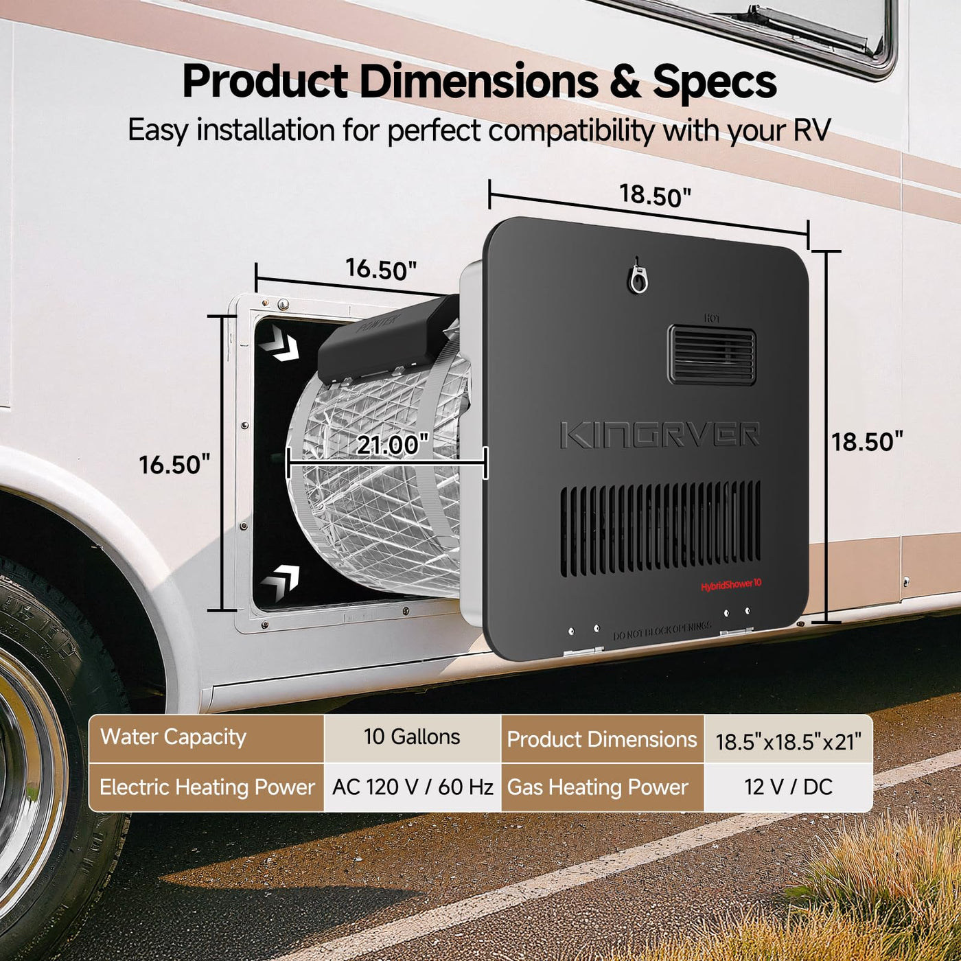 10 Gallon RV Tank Water Heater, KINGRVER HybridShower 10 - RV Gas and Electric Water Heater with Built-in Anode Rod, Porcelain L