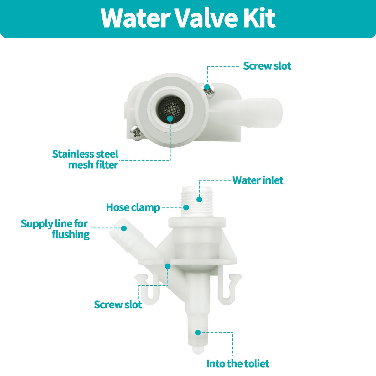 Aecsze 2 Pack 385311641 RV Toilet Water Valve Replacement Kit, Durable Plastic Water Valve Kit, for 300 310 320 Series for Domet