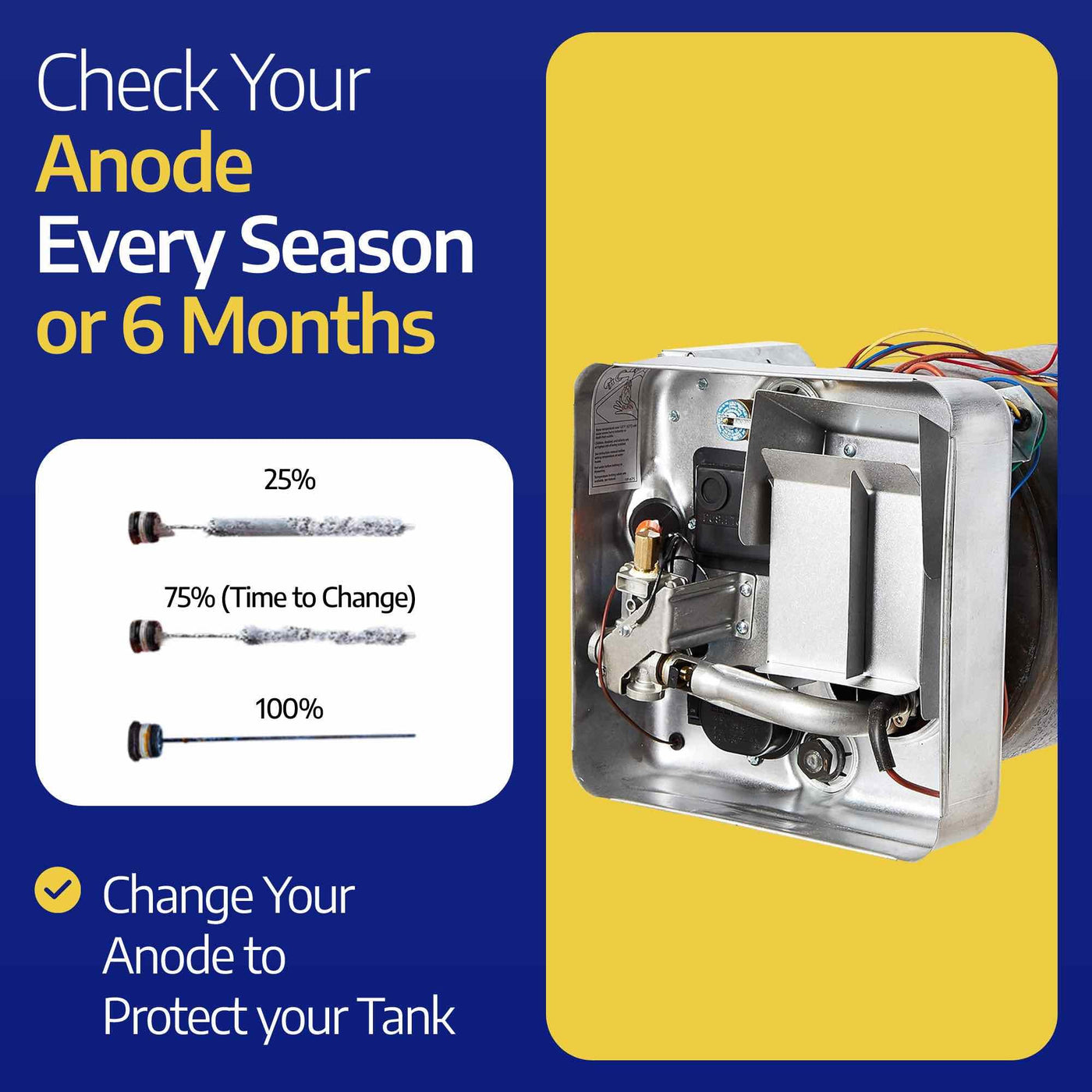 Are You Tired Of Spending Enormous Amounts Of Money And Energy On Fixing Procedures For Your Water Tank? Anode Rod For Hot Water Heater Is The Key. Would You Like To Avoid Unpleasant And Unforeseen Investments When It Comes To Your Water Heating Sources? You'Ve Come To The Right Place! Why Is This Product For You? This 2-Piece Anode Rod Set Is Made From Top-Quality Magnesium Which Is Non-Toxic And Entirely Safe For The Human Body. The High Absorption Rate Of Corrosive Elements Makes It A Better Choice Than Aluminum, Keeping Your Water Tank In Perfect Functioning Condition For Years. Plus, With A Ptfe Tape Included. Some Of The Amazing Features Of This Anode Rod For Rv Water Heaters Are: Set Includes 2 Anodes And 1 Ptfe Tape. Dimensions: 9,25'' Length And 3/4'' Npt Threads. Uses 1-1/16 Inch Socket. Compatible With Below Suburban Water Heater Models: Suburban Saw6D Saw6De Saw6Del Sw3P Sw4D Sw4De Sw4Del Sw4P Sw6D Sw6De Sw6Dec Sw6Del Sw6Delc Sw6Dem Sw6Dm Sw6P Sw6Pe Sw6Per Sw6Pr Sw10D Sw10De Sw10Dec Sw10Del Sw10Delc Sw10Dem Sw10Dm Sw10P Sw10Pe Sw10Per Sw10Pr Sw10V Sw10Ve Sw12D Sw12De Sw12Dec Sw12Del Sw12Delc Sw12Dem Sw12V Sw12Ve Sw16D Sw16De Sw16Dec. Material: Magnesium.