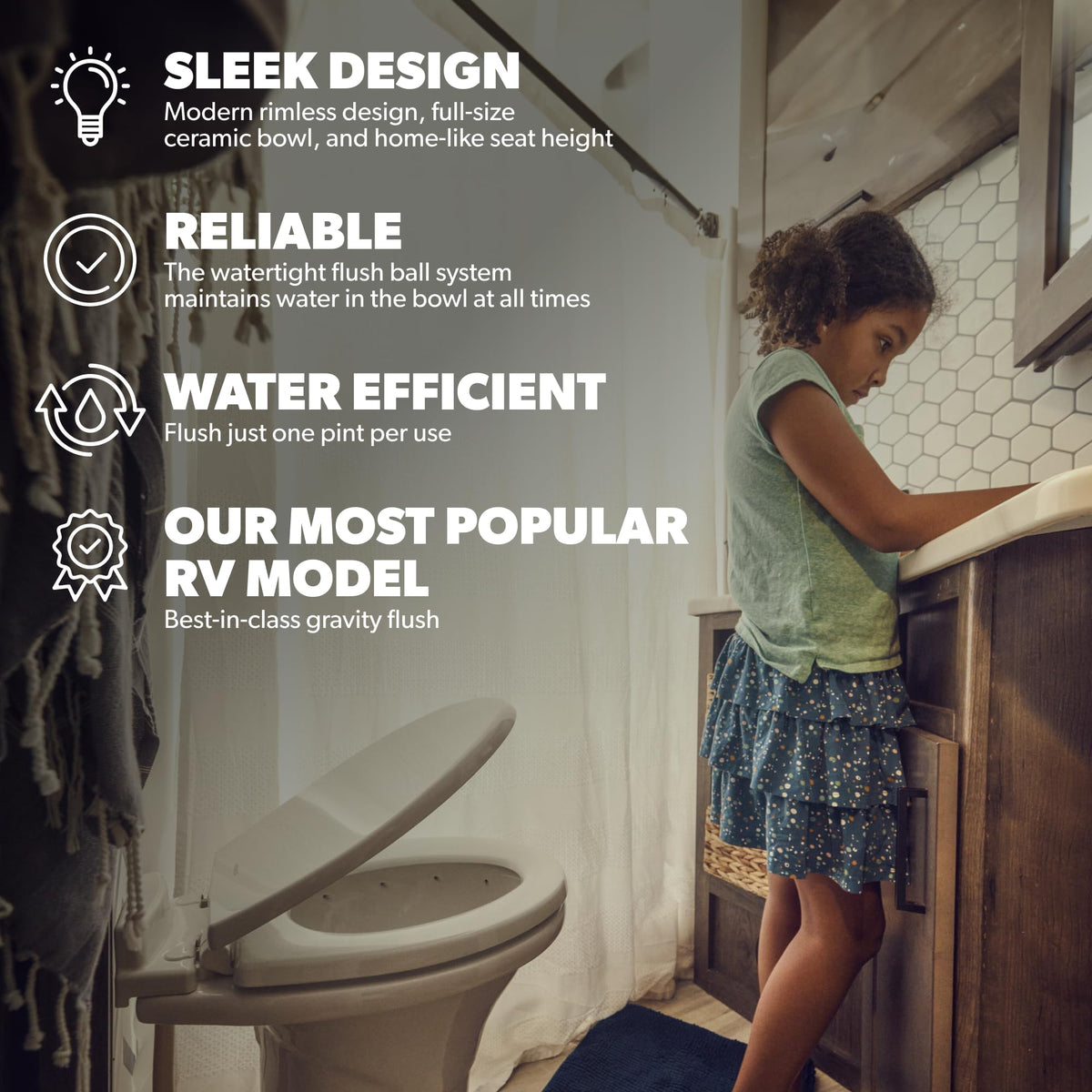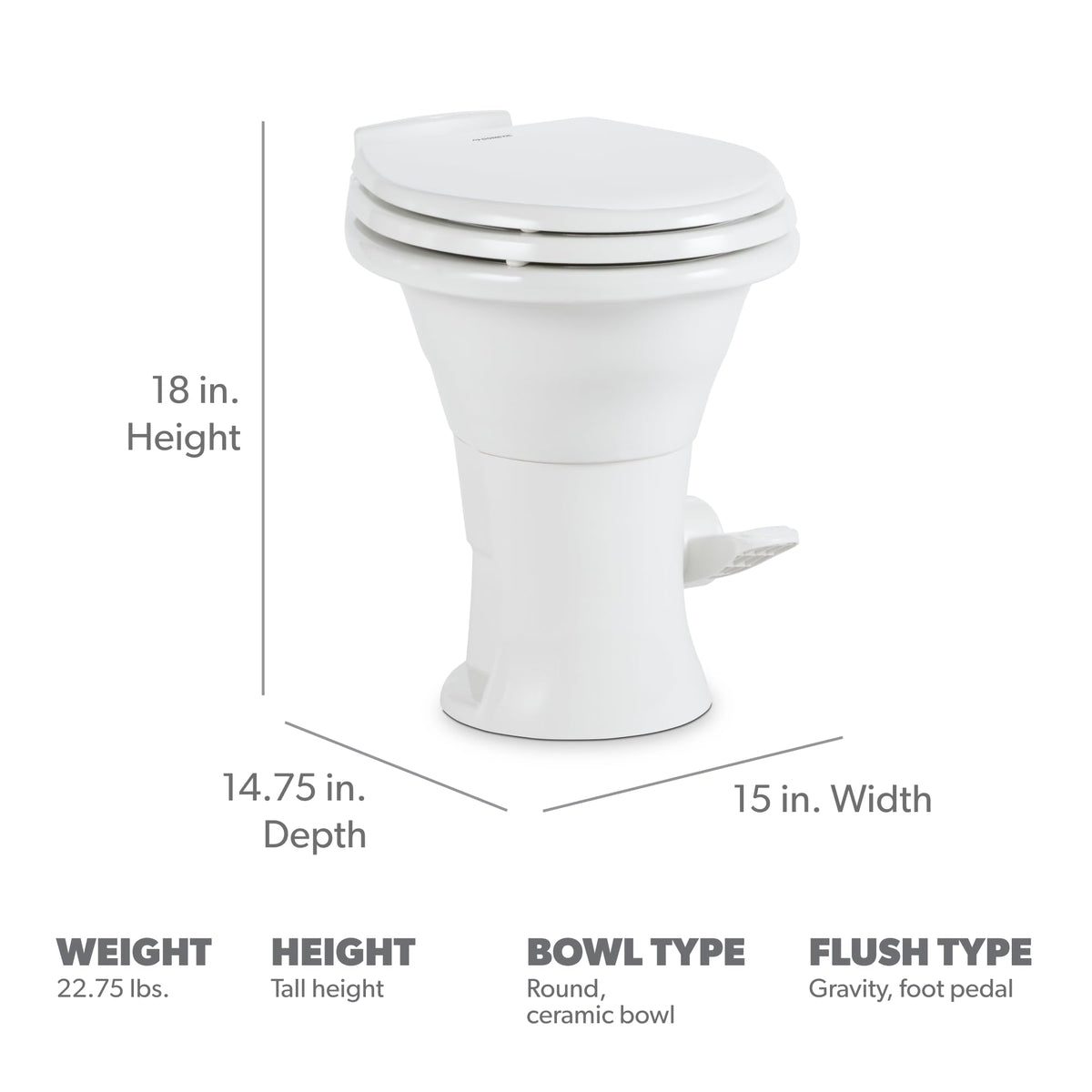 Dometic 302310031 310 Series Standard Height Toilet 19.75'' Height, Slow Close Wood Seat, White