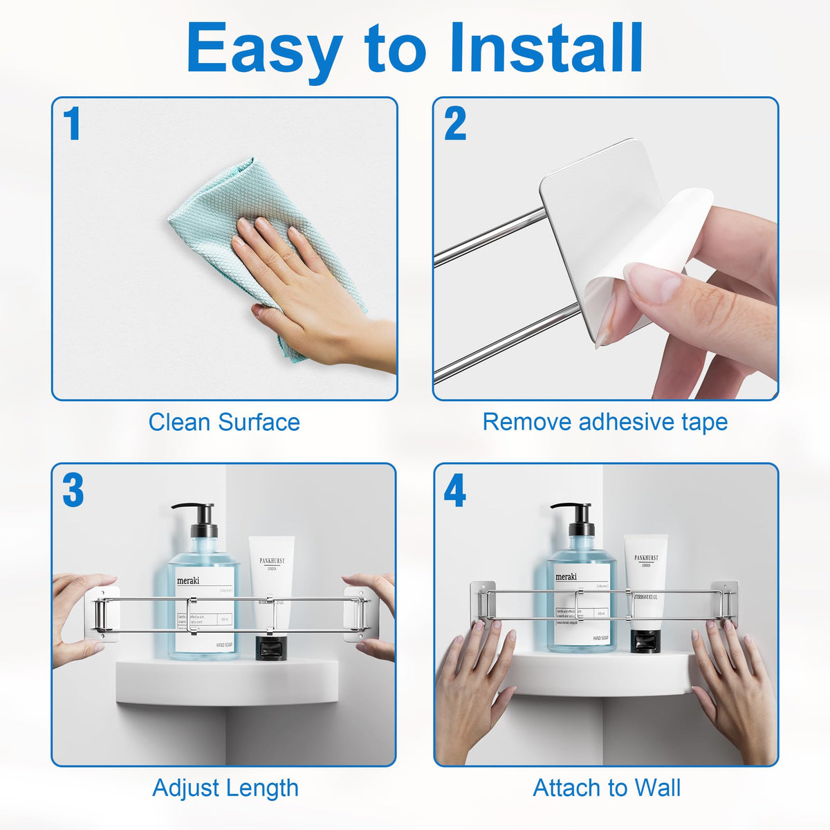 Josmimic Rv Shower Corner Storage Bar - Adjustable Stainless Steel Rod For Shelves - 7-13 Inch Length - Camper Organization, 2 P