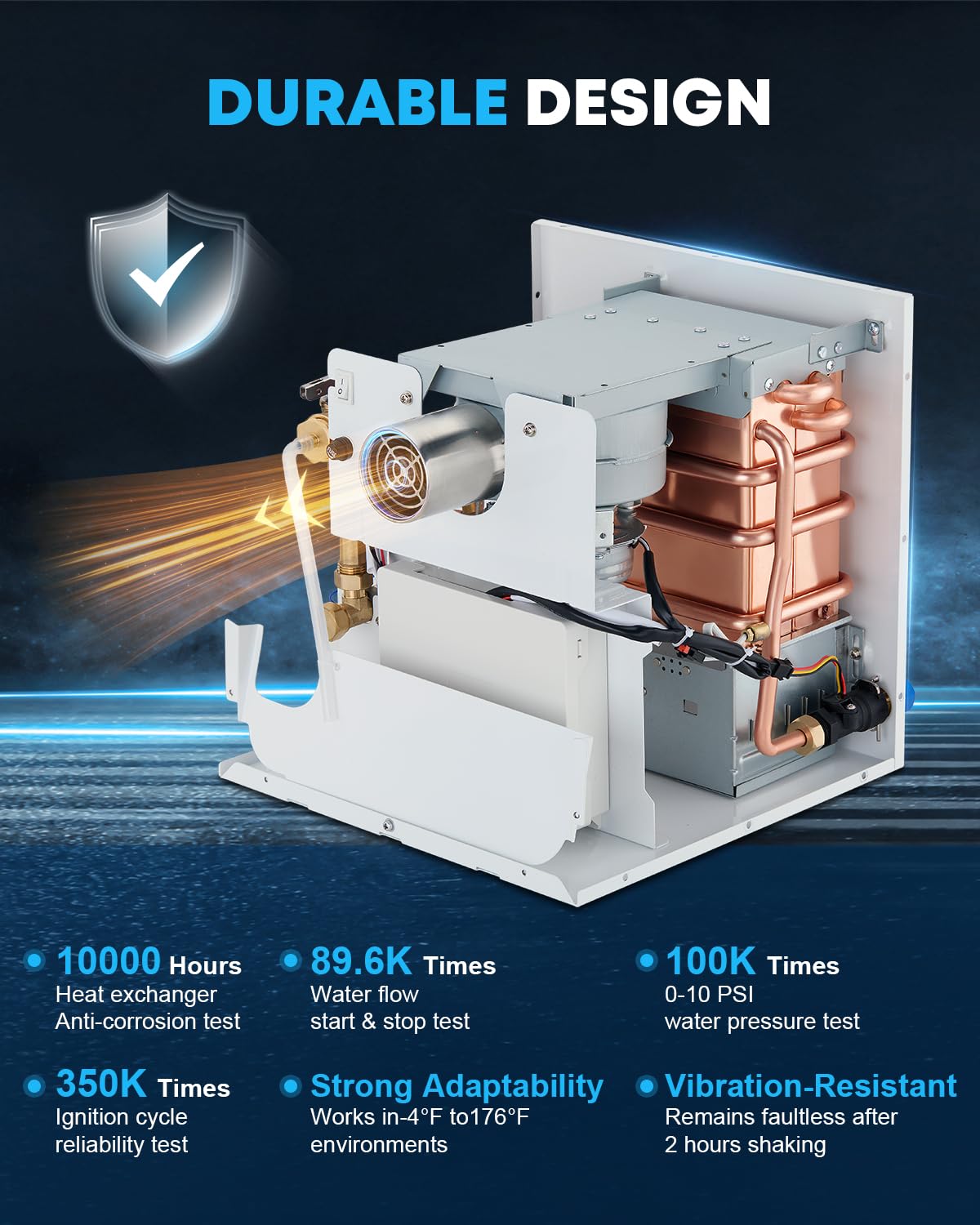 Kohree RV Tankless Water Heater, Upgraded 60,000 BTU RV Water Heater with 15 x 15 inches White Door and Remote Controller, 12V D
