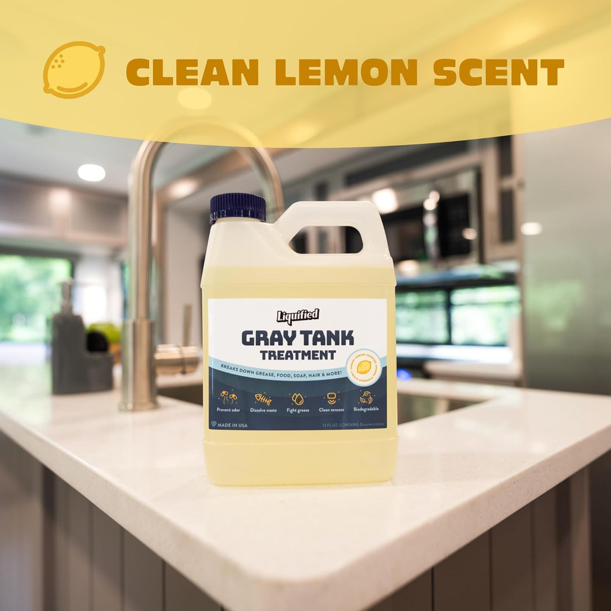 Experience the difference with Liquified's Gray Holding Tank Digester Lemon Scent. Whether you're a seasoned RVer or a weekend warrior, this product is essential for maintaining a pleasant and efficient RV living experience.