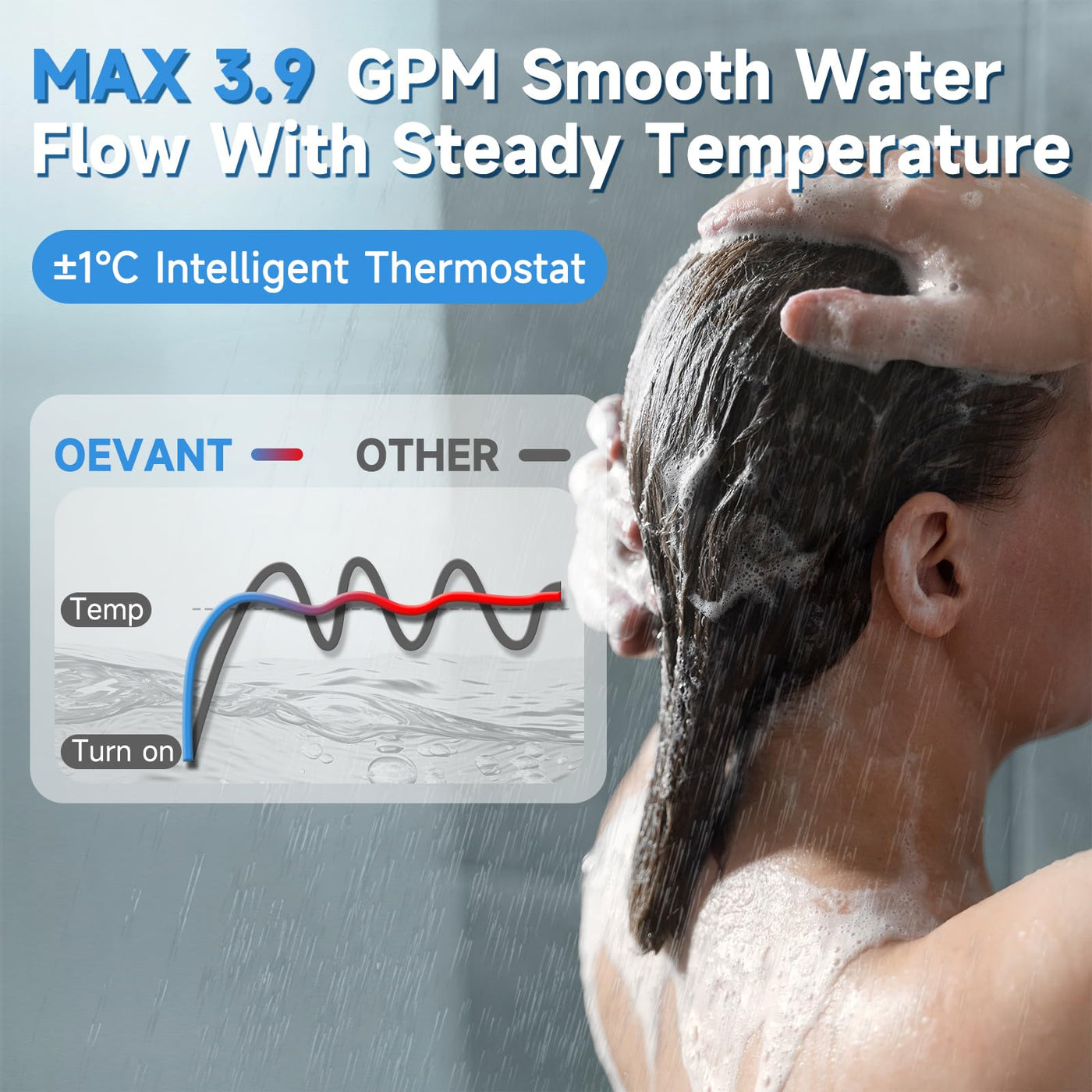 OEVANT RV Tankless Water Heater, 55,000 BTU RV Instant Water Heater with Intelligent Thermostat, 15x15 Inchs Door and Front Water Outlet, Propane, DC 12V, Compatible with All RVs(Black)