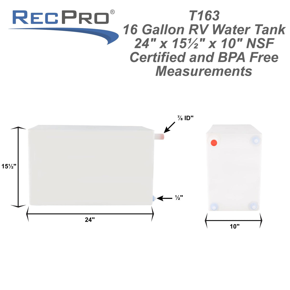 Traveling in an RV or trailer is an exciting and unforgettable experience, but it's important to have all the necessary supplies to ensure a comfortable trip. That's why we are proud to introduce the RecPro RV Water Tank. We understand the importance of having a reliable source of clean drinking water during your travels, which is why we have crafted our water tank with the highest quality materials. Our tank is manufactured using polyethylene material, ensuring that your water is safe and free from any harmful chemicals. Plus, it is proudly made in the USA, so you can trust in its quality and durability. Not only is our RV Fresh Water Tank safe and sanitary, but it also holds an impressive amount of water. That means you and your fellow travelers can enjoy refreshing and clean drinking water throughout your journey. And when you're out in the great outdoors, you never know when you may need a backup water supply. That's where our water tank comes in handy. It is strong enough to withstand the rigors of RV and trailer camping, making it the perfect backup supply for any unexpected situations. We know that when you're on the road, convenience and reliability are crucial. That's why our RecPro RV Water Tank is designed to be both sturdy and corrosion resistant. It can handle even the toughest conditions, ensuring that you always have a supply of clean water on hand. Say goodbye to flimsy and unreliable water containers, and welcome our durable and long-lasting tank into your RV or trailer. Trust us to provide you with a product that will make your travels easier and more enjoyable. Our RecPro RV Water Tank is not just a water container, it's an essential part of your journey. Don't settle for anything less than the best - choose our water tank to ensure your peace of mind and have a worry-free and comfortable trip.