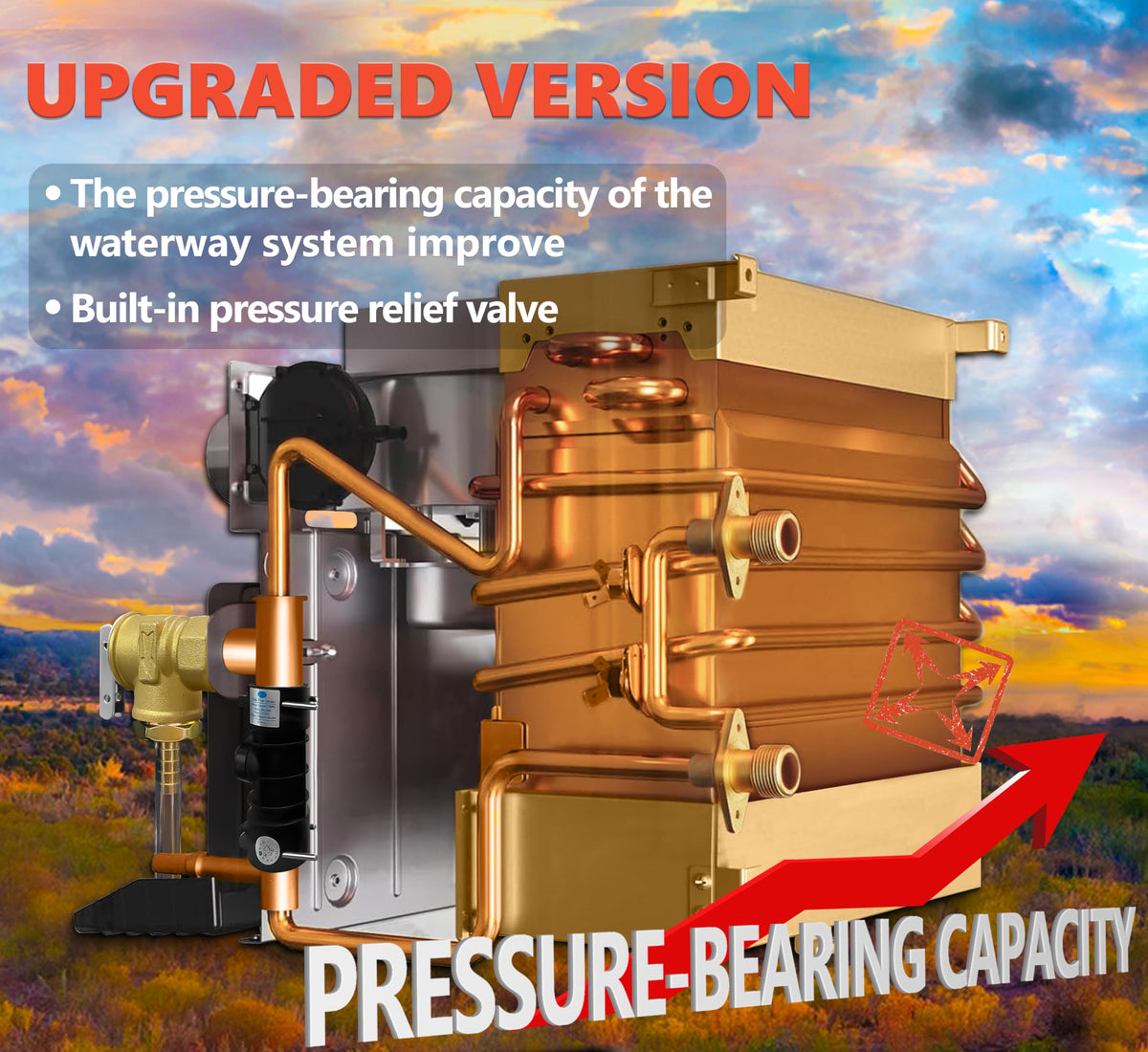 RUNSAIL [Upgraded Version] RV Tankless Water Heater, 65,000 BTU,Max 3.96 GPM, 15 x 15 Inches White Door, Build-in Pressure Relie