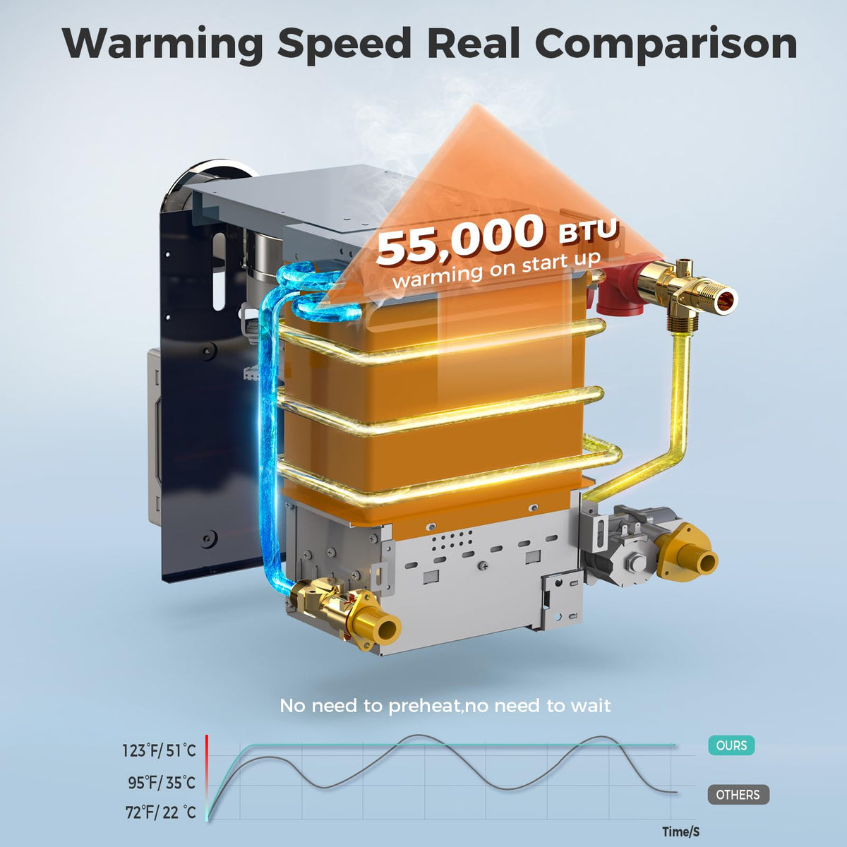 RV Tankless Water Heater, High Altitude Available, with White Door and Controller, DC 12V, On Demand Instant Hot Water Heater, W