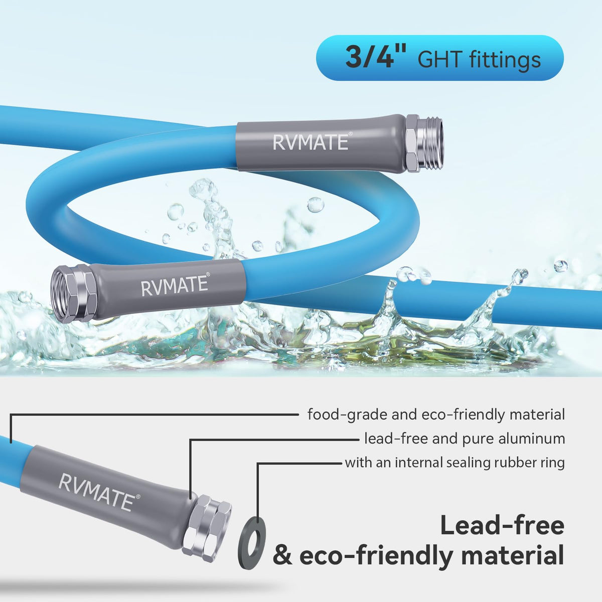 Rvmate Rv Water Hose 75Ft, 5/8 Inner Diameter Drinking Water Hose Lead-Free, No Leaking Garden Hose For Rv/Trailer/Camping, R