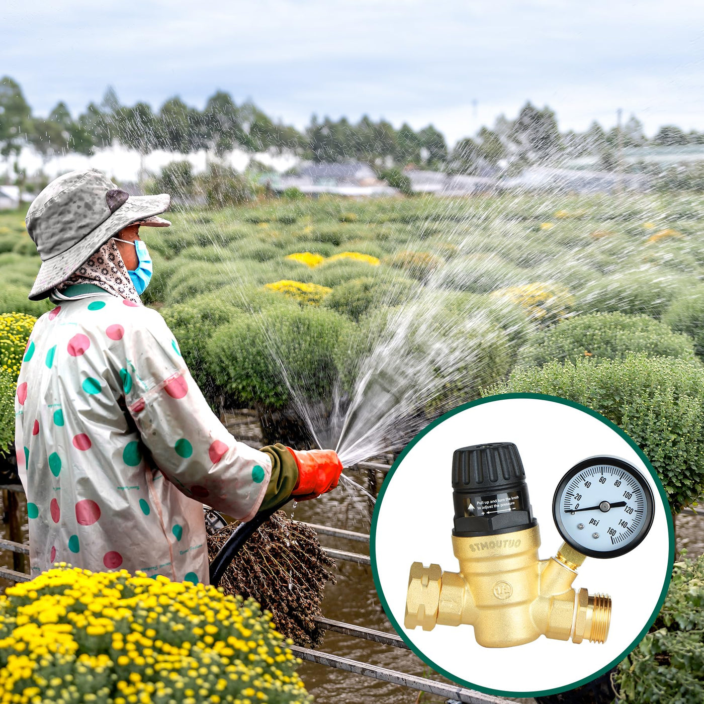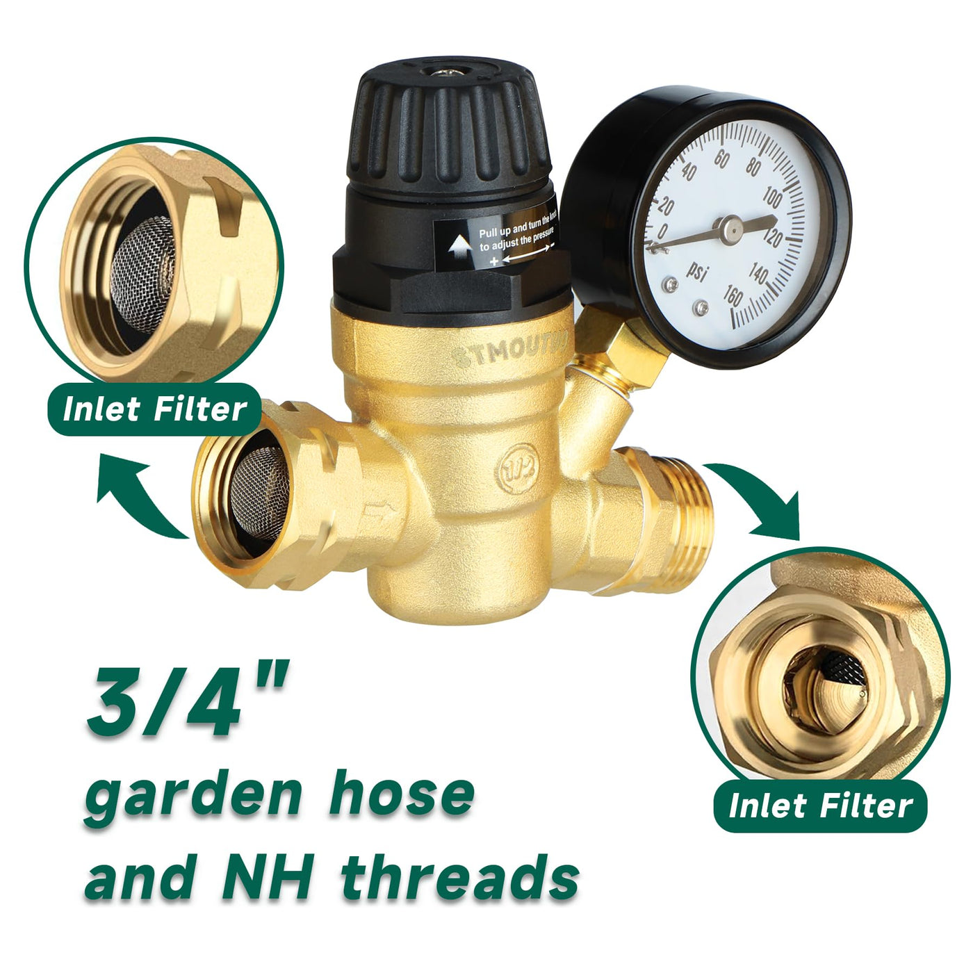 Stmoutuo Rv Water Pressure Regulator For Rv Camper. Brass Lead-Free Adjustable Camper Water Pressure Regulator With 0-160 Psi Ga