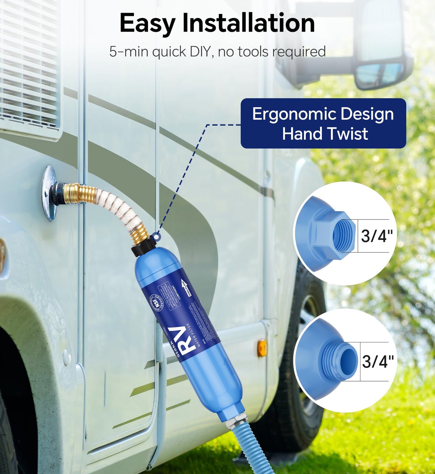 Stokk RV Water Filter, NSF Certified, RV Inline Water Hose Filter, Garden and Camper Water Filter, Greatly Reduces Bad Taste, Ch