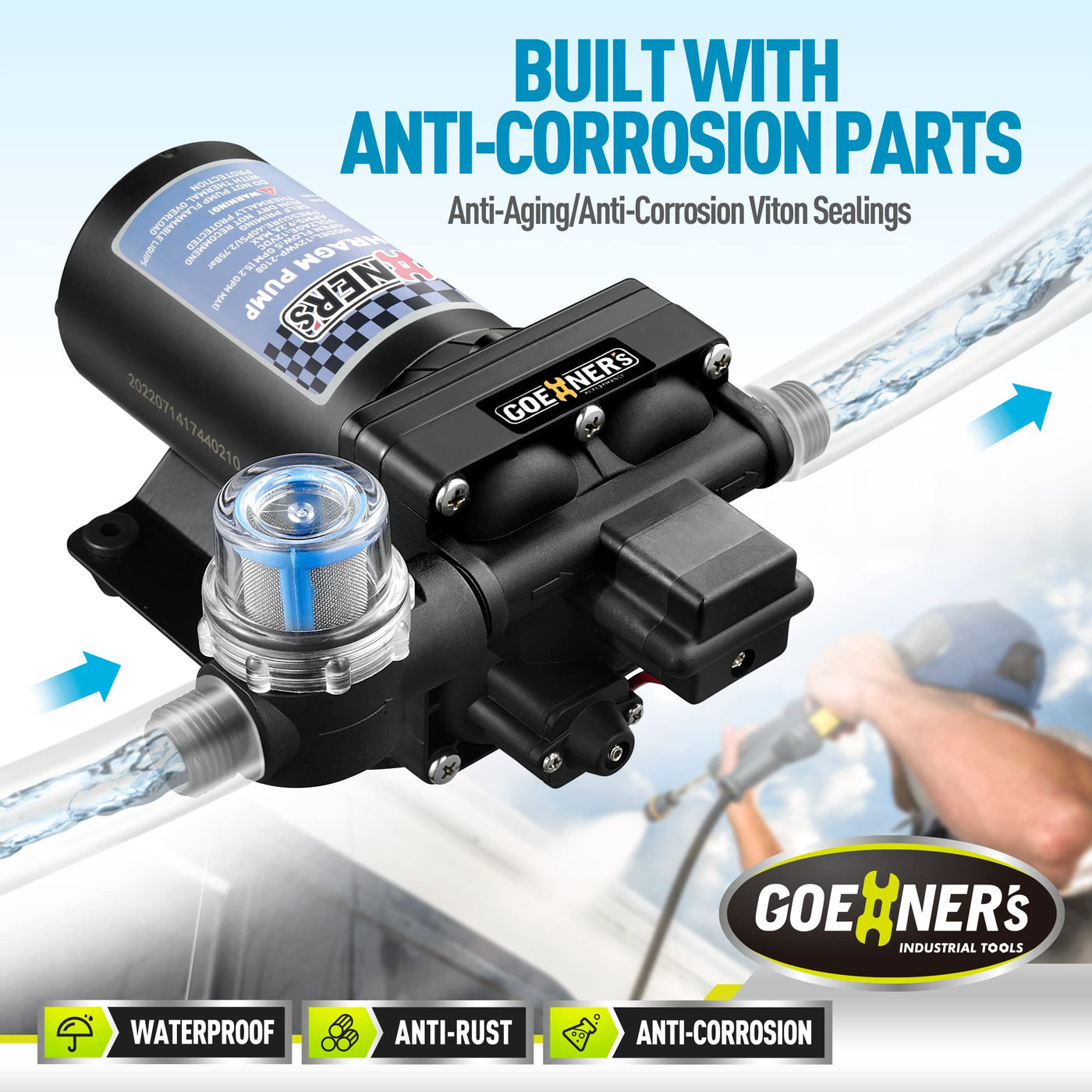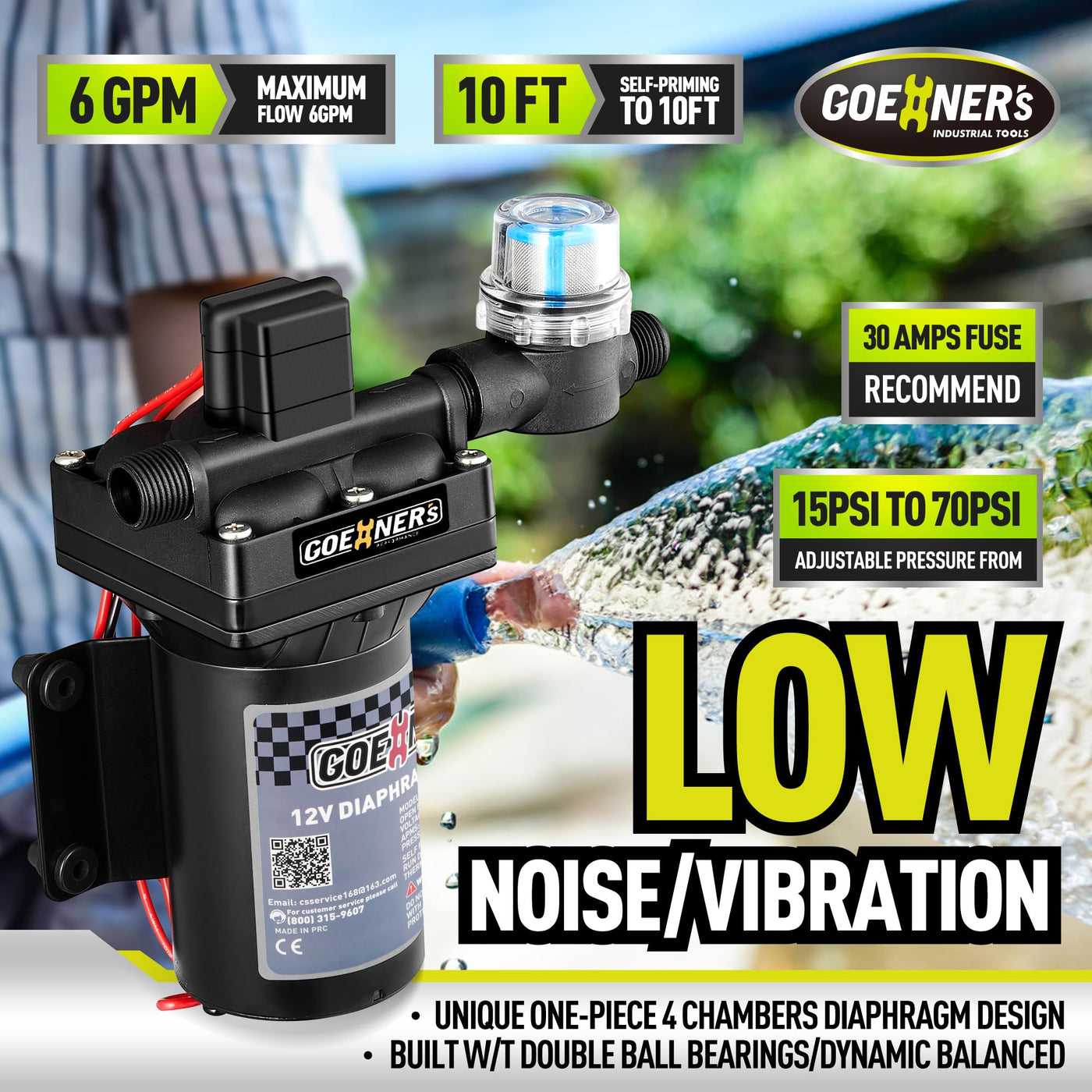 [Upgraded Version] RV Fresh Water Pump, 12V DC Water Pump, 6GPM 70PSI Self-Priming Diaphragm Water Pump with Pressure Switch and Strainer for RV, Marine, Yacht, Caravan