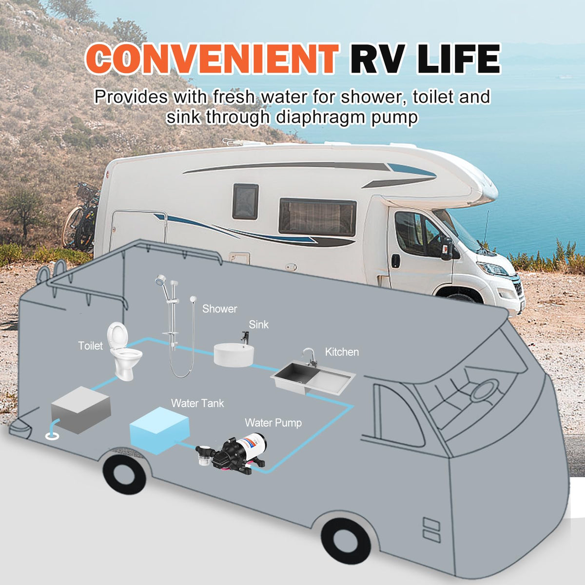 Youngtree 33 Series 12V Boat And Rv Replacement Pump 33 Series Pump Features Industry Standard Fittings, Wiring, And Mounting Base To Directly Replace Similar Pumps. The Pump Is Designed As A Precision Pure Copper Motor, Which Makes It Have The Features Of Long Service Life, Low Consumption And High Performance. The 3-Chamber Volume Design Can Achieve High Flow Up To 3.5Gpm, Self-Priming At 9.8 Feet And Can Run Dry. The Pump Is Equipped With Anti-Vibration Rubber Feet, Which Greatly Reduces Noise And Makes It Quiet In Operation. It Is The Great Partner For Travel And Work. The Package Includes: 1 X Diaphragm Pump 2 X Barbed Hose Adapters 1 50 Mesh Inlet Filter 1 User Manual When The Pump Leaves The Factory, A Small Amount Of Water May Remain In The Pump. This Is Due To The Rigorous Testing Of The Pumps To Ensure Quality And Compliance With Testing Standards. This Does Not Mean That The Pump Has Been Used.