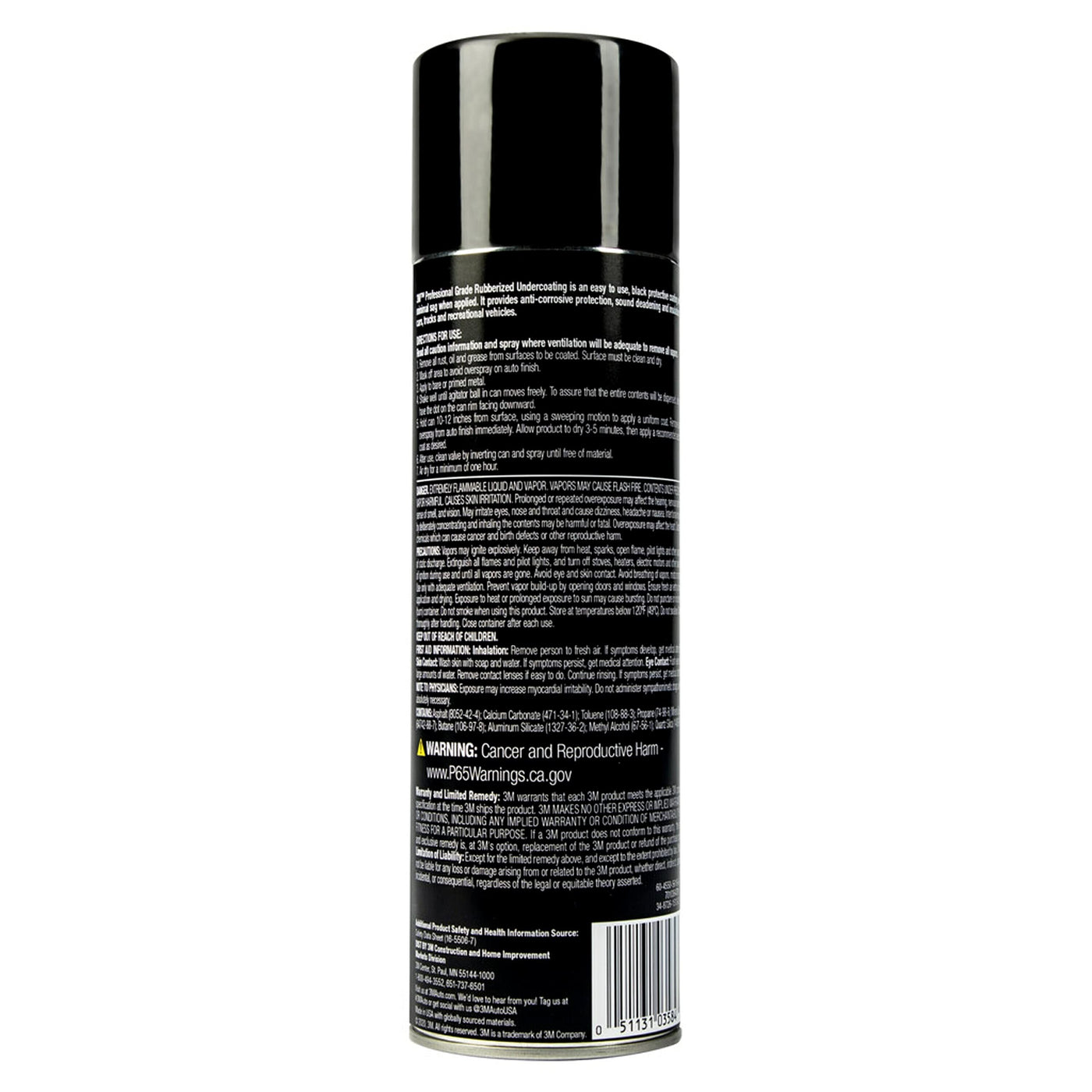 3M Professional Grade Rubberized Undercoating is an easy to use black protective coating that does not run when applied, provides anti corrosive protection, sound deadening and insulation to cars, trucks and recreational vehicles. Warning: This product can expose you to chemicals which is [are] known to the State of California to cause cancer and birth defects or other reproductive harm.