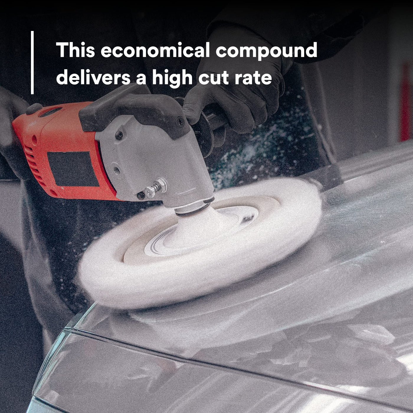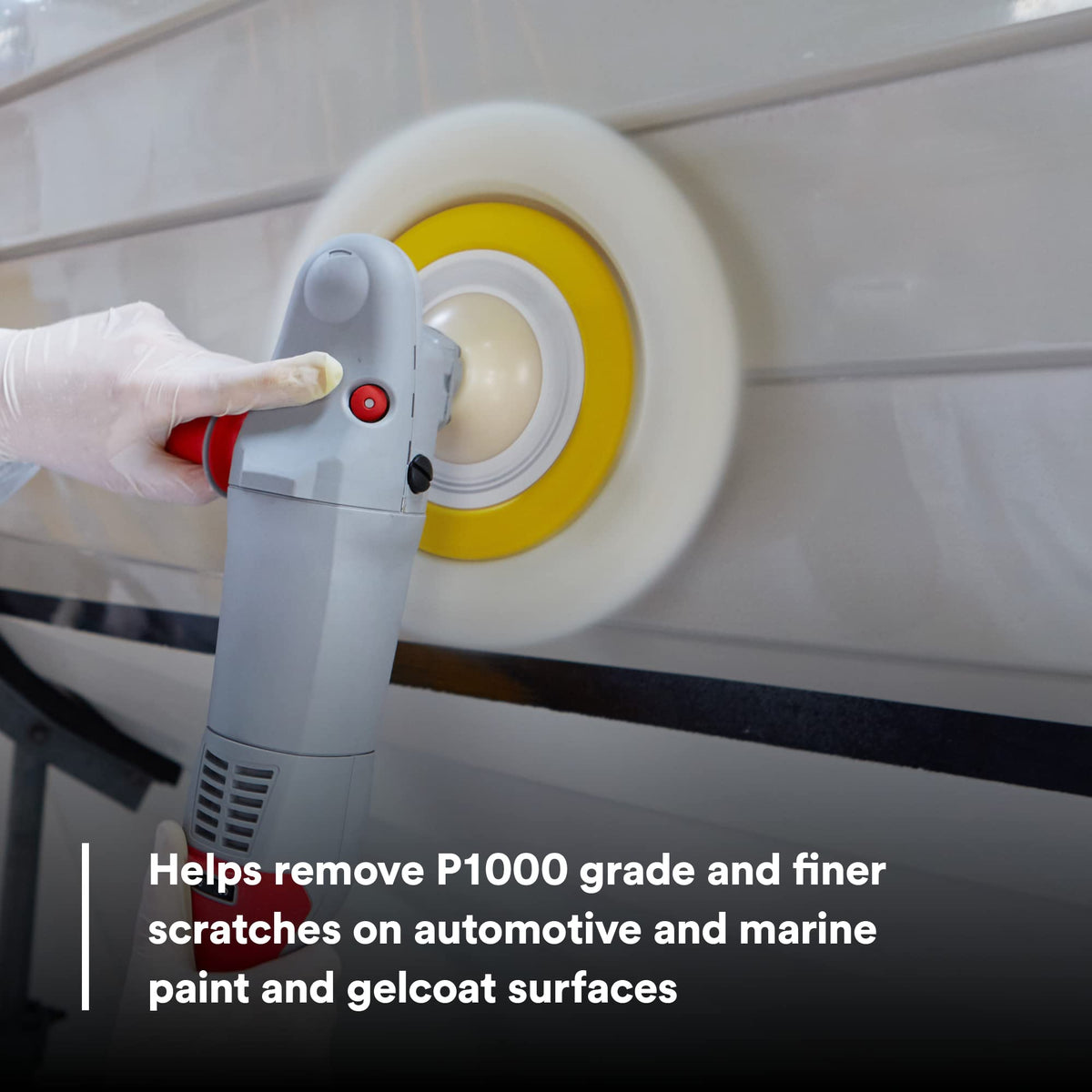 Q: How does the application process work for this rubbing compound?A: To apply, use a buffer or applicator pad, applying medium pressure to help the compound remain wet longer for better cutting. Follow up with polishes and waxes for optimal results.
