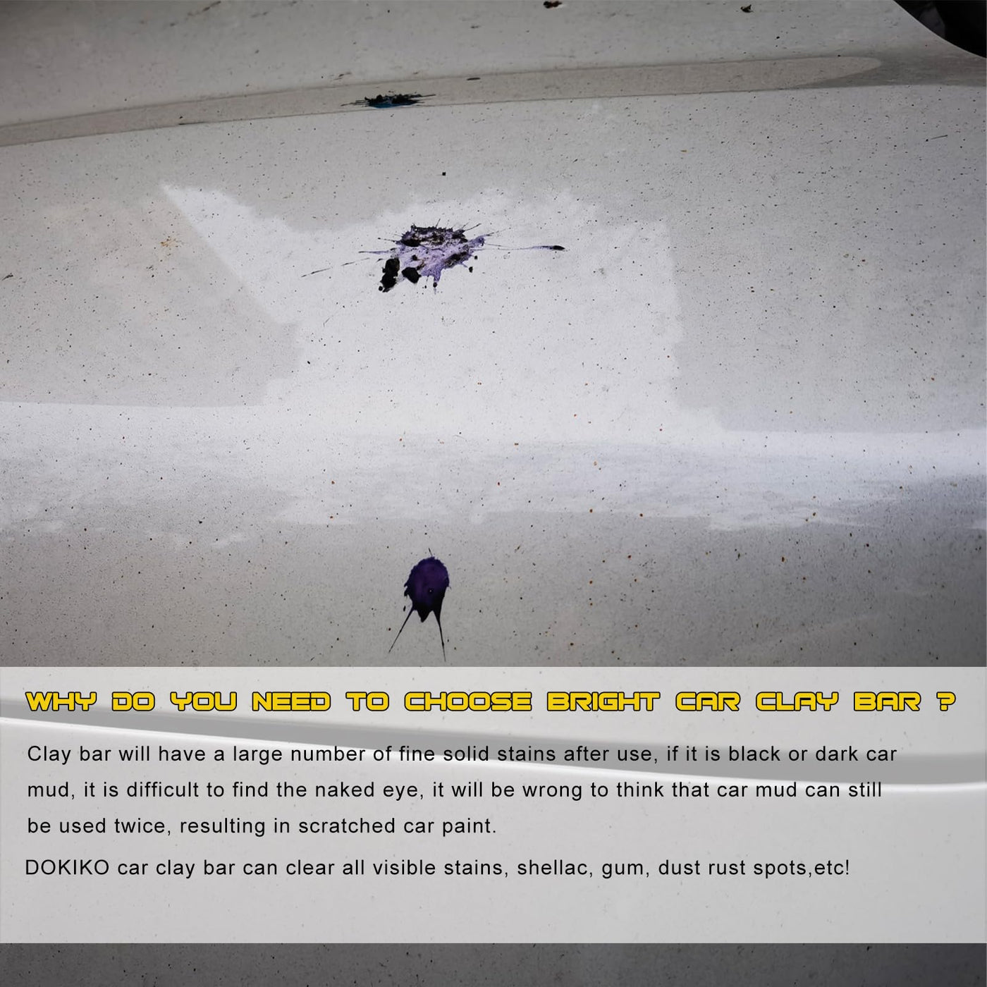 DOKIKO Clay detail Bar is a high-density synthetic putty that can physically remove embedded dirt from automotive paint surfaces. When pollution, industrial sediment, and environmental pollution particles are stuck in the pores of the paint surface and adhere to the paint, it can cause the car paint to lose its luster. At this point, direct polishing and waxing can lead to more damage and scratches, as they can clog and destroy expensive polishing pads. Cleaning the surface with a clay stick can effectively reduce damage to the paint surface and the machine.