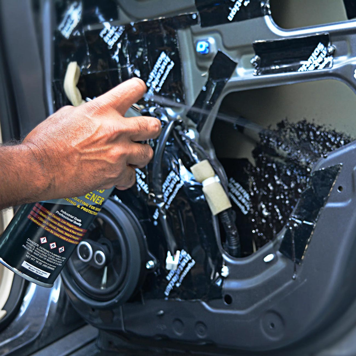 This industrial-grade, flexible coating is designed for sound deadening and protection, featuring high-density, lightweight compounds that greatly reduce road noise and panel vibrations. It adheres to various surfaces including wood, plastic, metal, and fiberglass, providing weatherproof performance suitable for both interior and exterior vehicle applications. Warning: this product can expose you to chemical which are known to the state of California to cause cancer or reproductive harm. For more information, go to www.P65Warnings.ca.gov. Contains: (CAS#) Hydrocarbon propellant (68476-86-8), Xylene (1330-20-7), Rosin Ester (PROPRIETARY), Styrene-Isoprene Block (025038-32-8), Aromatic Hydrocarbon (108-88-3), Silicon Dioxide (112926-00-8), Inorganic Metal Oxide (7631-86-9), Methyl Acetate (79-20-9), Poly (Buatdiene-Co-Styrene) (9003-55-8).