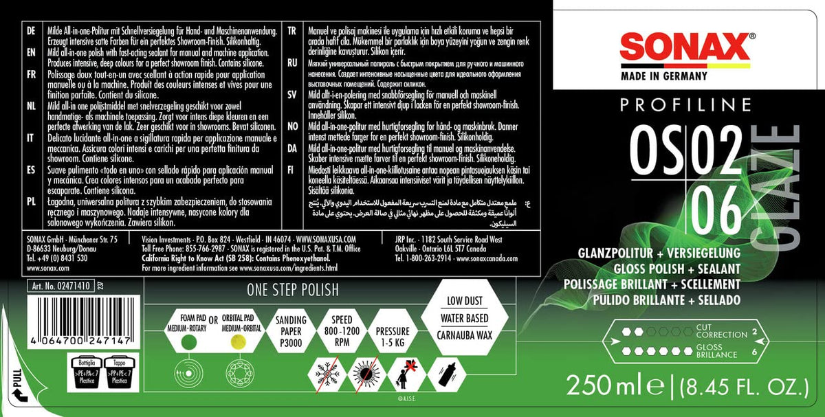 Sonax Glaze Os 02-06 247141 | All-In-One Car Polish For Scratch Removal, High-Gloss Finish & Ceramic Protection | Sio2-Based 6-Month Durability | Hologram-Free Results For All Paint | 250Ml