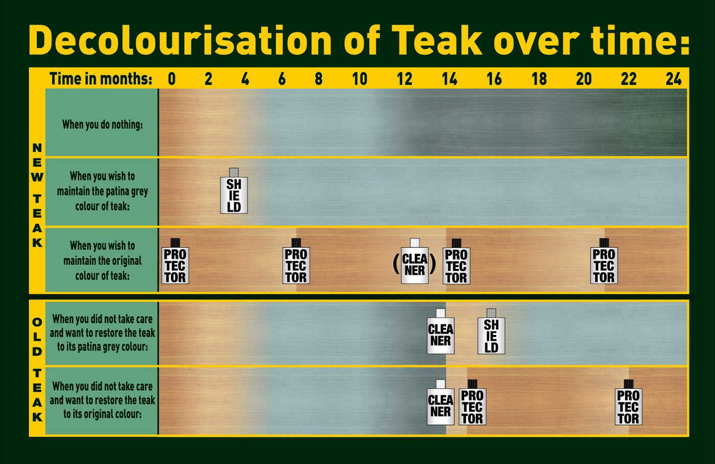 Q: Can this product help restore the color of my weathered teak furniture?A: Yes, the cleaner in the 3-in-1 Care-Kit is designed to clean and brighten the wood, helping to restore the natural color of weathered teak furniture.