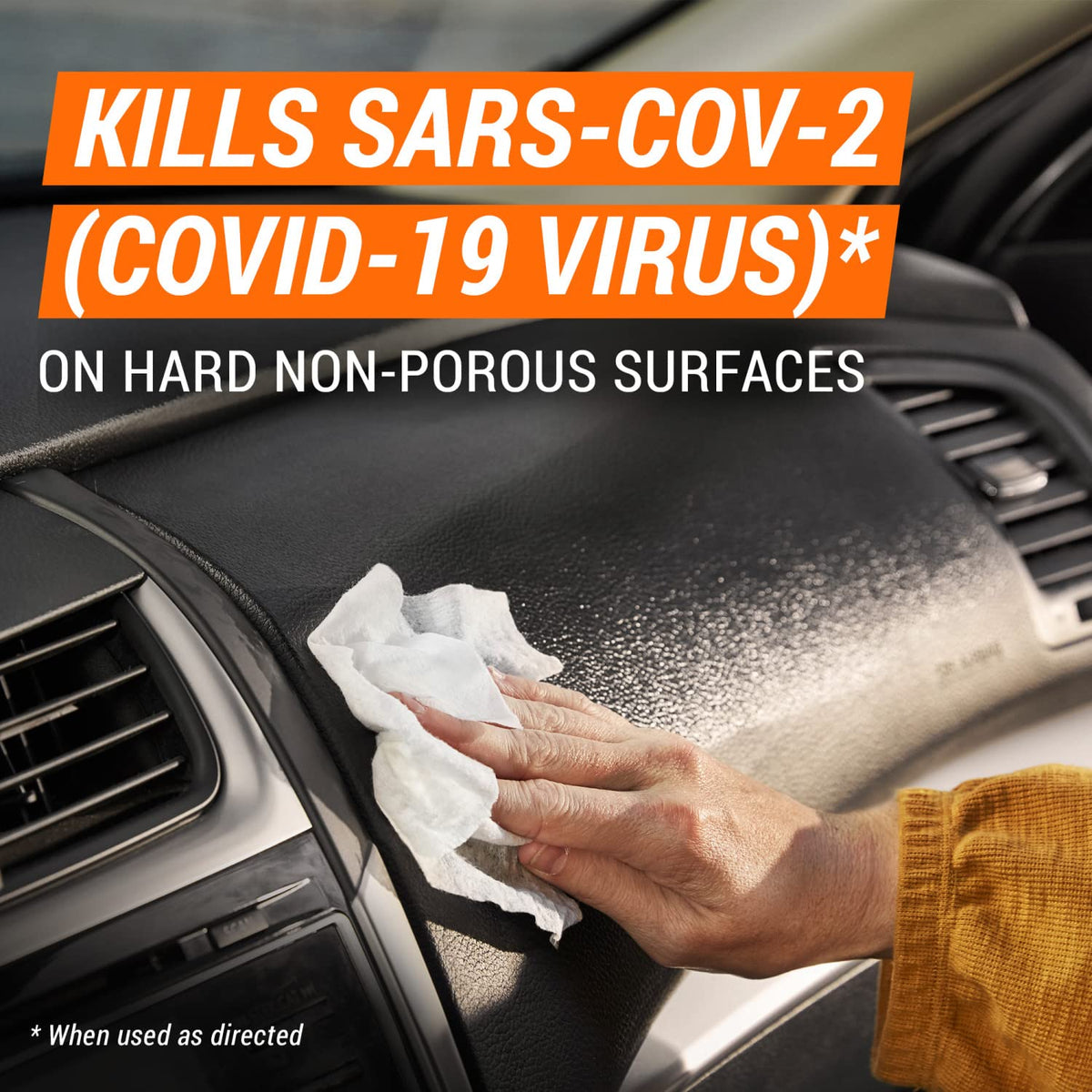 Armor All Disinfectant Wipes make it easy to clean and disinfect hard surfaces in your vehicle. These disinfecting wipes kill 99.9% SARS-CoV-2 Virus (1). Armor All disinfecting car wipes work on hard, non-porous surfaces, including plastic, metal, glass and door handles. These car cleaning wipes work as a surface disinfectant and surface cleaner when used as directed on the label. Grab a car care wipe from the canister, and wipe it over interior and exterior surfaces in your car, truck or RV. The canister keeps the wipes moist and makes it easy to grab one when you need it. Help keep your car looking and feeling like new with Armor All. (1) On hard, non-porous, non-food surfaces.
