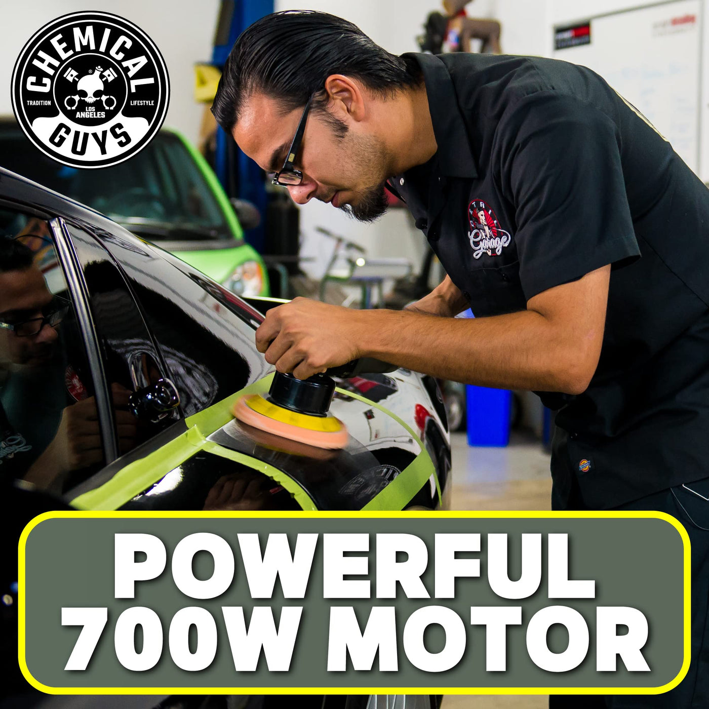 Q: What is the power rating of the Chemical Guys BUF_501X 10FX Random Orbital Polisher?A: The Chemical Guys BUF_501X 10FX Random Orbital Polisher features a powerful 700W motor, providing optimal performance for detailing tasks such as removing swirls and scratches.