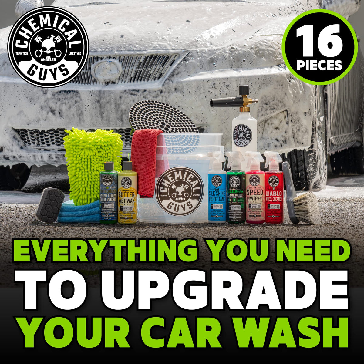 Chemical Guys Hol169 16-Piece Arsenal Builder Car Wash Kit With Foam Cannon, Bucket And (6) 16 Oz Car Care Cleaning Chemicals, G
