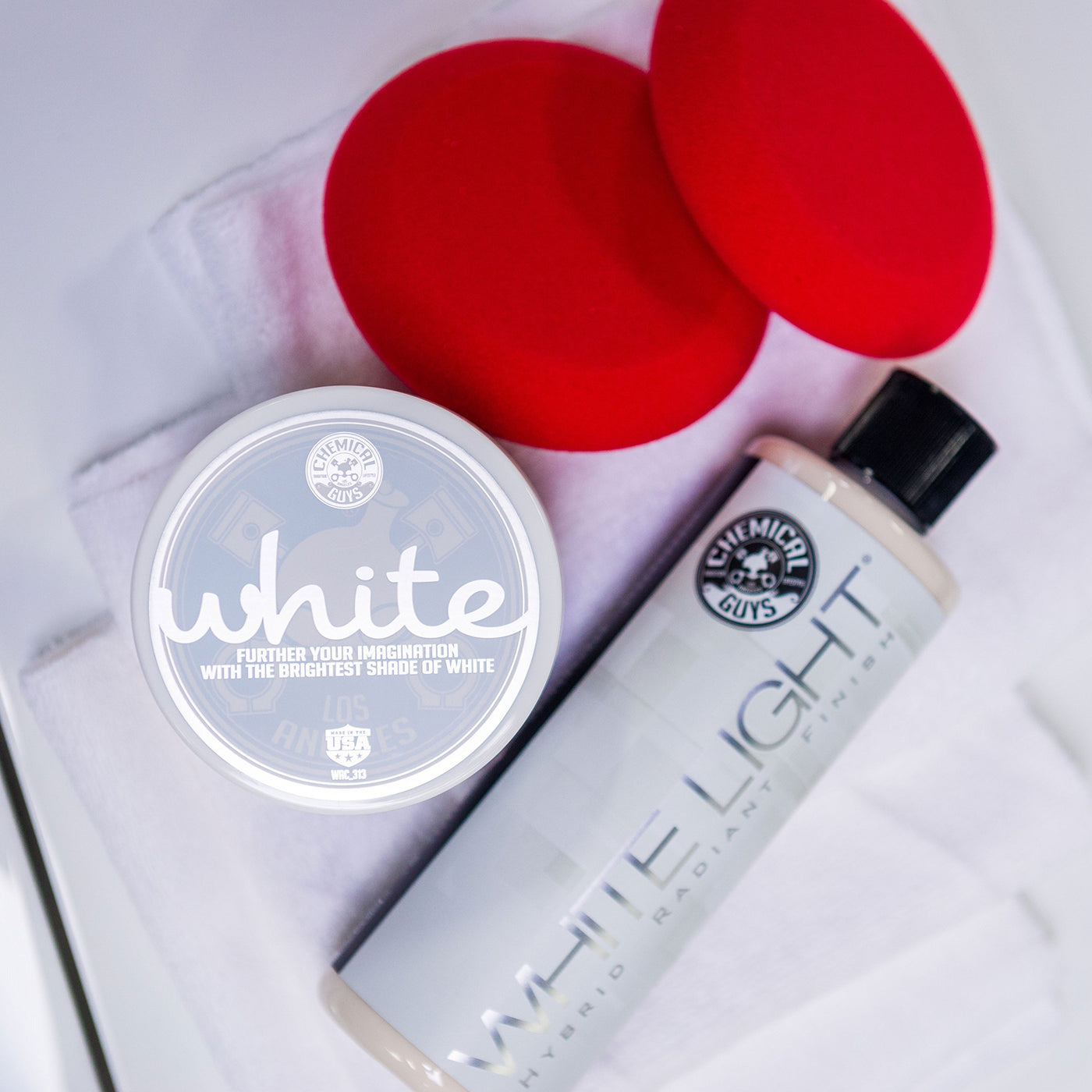 White Is Unlike Any Color, So It Requires Special Treatment To Look Its Best. The Distinct Look Of White Evokes Images Of Purity And Elegance With Its Brilliant Shine And Lustrous Reflection. Freshly-Waxed White Paintwork Looks Glossy And Wet In Its Own Graceful Way. Certain Car Colors Attract Loyal Followings, And Its Clear To See That White Is The New Black To Detailing Enthusiasts Everywhere. Chemical Guys Has Assembled A Maintenance Kit With The Latest And Most Advanced Products Tailored For White And Light Color Paint Finishes: The White Paint Maintenance Kit. This Kit Is A Must-Have For Enthusiasts Who Want Their White Cars To Shine With A Crisp, Deep, And Brilliant Shine. Use White Light Glaze To Add Extra Depth, Gloss, And Pure White Glow, And Fill Minor Swirls And Scratches. Top It With White Wax For Durable Protection And Enhanced Brilliant White Shine For A Distinct Look. The White Maintenance Kit Comes With Luxurious White Monster Edgeless Microfiber Towels And Premium Foam Applicators For An Even Spread And Scratch-Free Touch On Any Paint Finish. Indulge In The Purity And Brilliance Of The All-New Chemical Guys White Paint Maintenance Kit For Your White, Or Light Color Automobile.