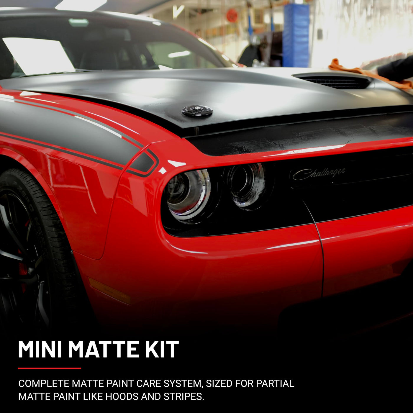 Q: Is the Mini Matte Kit safe for my vehicle's paint?A: Absolutely! The products in the Mini Matte Kit are designed to clean and protect your vehicle's matte surfaces without the use of waxes or fillers. This ensures your matte finish remains flawless and is protected from elements and contaminants.
