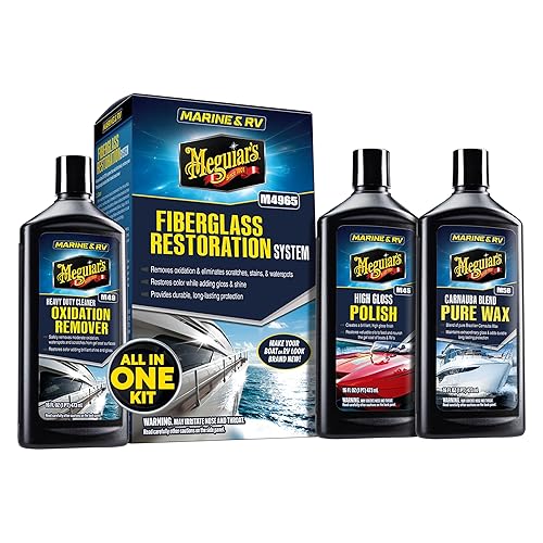 Meguiar's M4965 Marine/RV Fiberglass Restoration System Kit - Remove Oxidation, Restore Shine and Gloss and Protect with Durable, Long-Lasting Wax - 3 Products (Packaging May Vary)