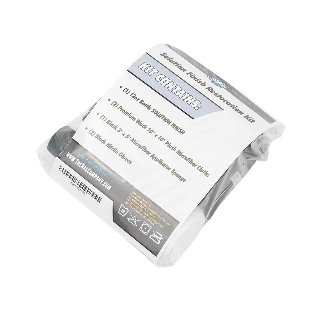 The Rag Company - Solution Finish Full Installation Kit - Enriche, Condition, Protect; Black Plastic Trim Restorer (12Oz) + 2 Microfiber Towels + Applicator Sponge + Gloves