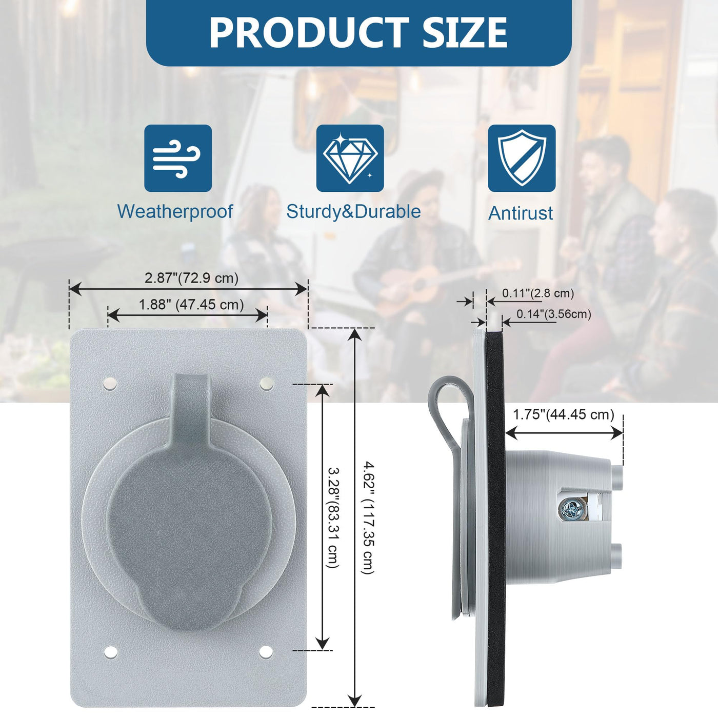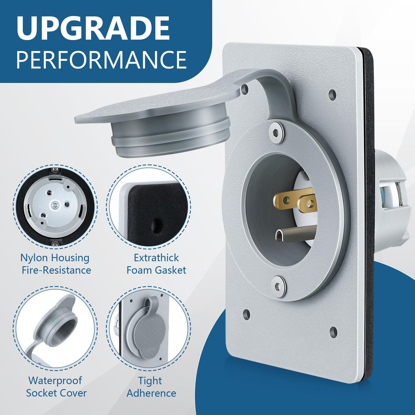 1. This 15 AMP power inlet receptacle exhibits a unique flip design that adds to its waterproof attribute, effectively preventing dust and humid air from compromising its performance. 2. Working perfectly with a generator transfer switch or power inlet plug, this straight blade flanged male power inlet receptacle can efficiently supply power to your home, business, boat, car, trailer, or RV inlet. Package Included: 2 x 5278-CWP 15 AMP Straight Blade Flanged Male Power Inlet Receptacle Specification: Color: Grey Product Dimensions: 4.62 x 2.87 x 0.04 inches Material: Metal, Plastic, Rubber Voltage: 120 Volts Wattage: 1875 watts Amperage Capacity: 15 Amps Compatible with FS BOX, FD BOX (METAL, PLASTIC)