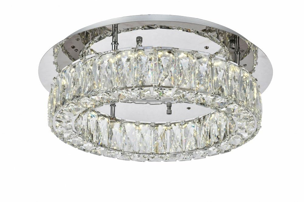 Elegant Lighting Modern Bright Home Decorative Monroe Led Light Chrome Flush Mount Clear Royal Cut Crystal - 17.7X17.7X5.1