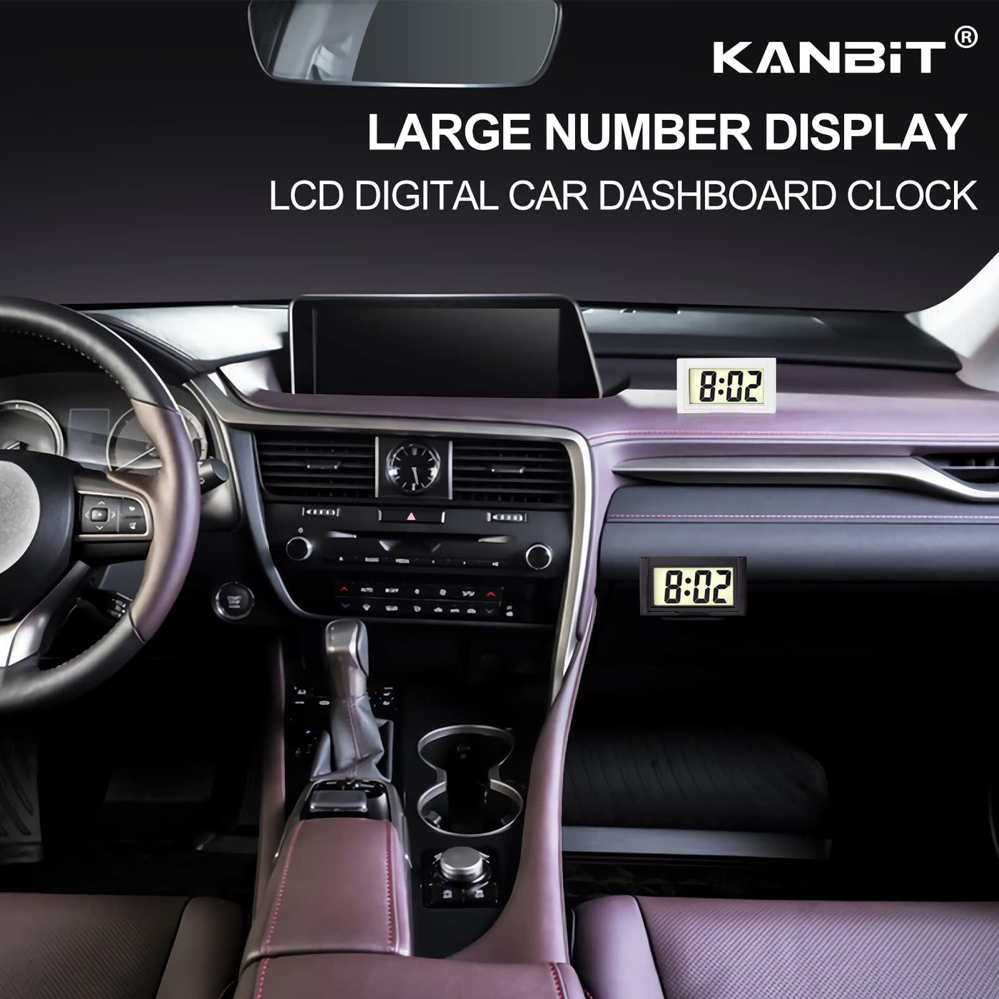 Q: What features make the KANBIT Small Digital Car Dashboard Clock easy to read while driving?A: The KANBIT Small Digital Car Dashboard Clock features a large clear LCD display, which ensures that the numbers are big enough to read the time and date at a glance. This design promotes safety as drivers can quickly check the time without distraction.