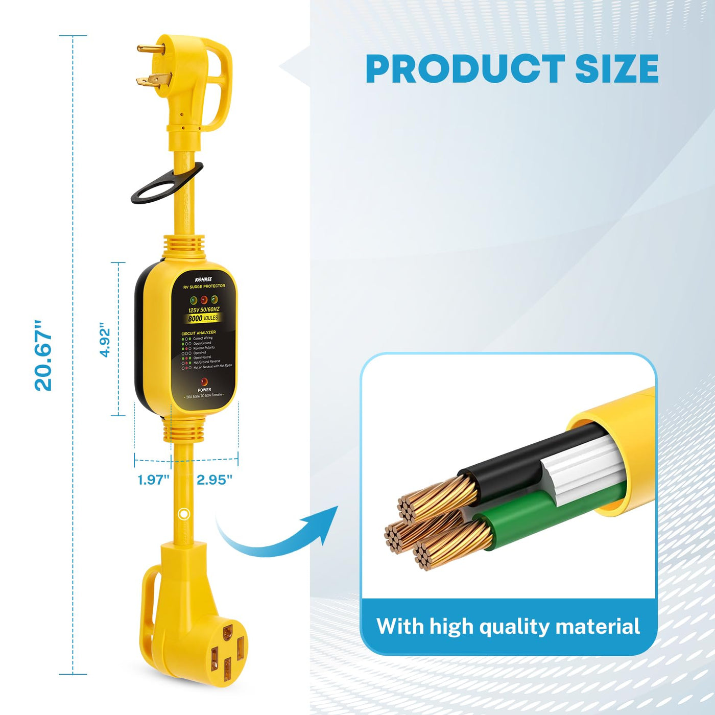 Kohree 30 Amp To 50 Amp Rv Adapter With Surge Protection, 8000 Joules Rv Surge Protector 30/50 Amp, Circuit Analyzer For Camper