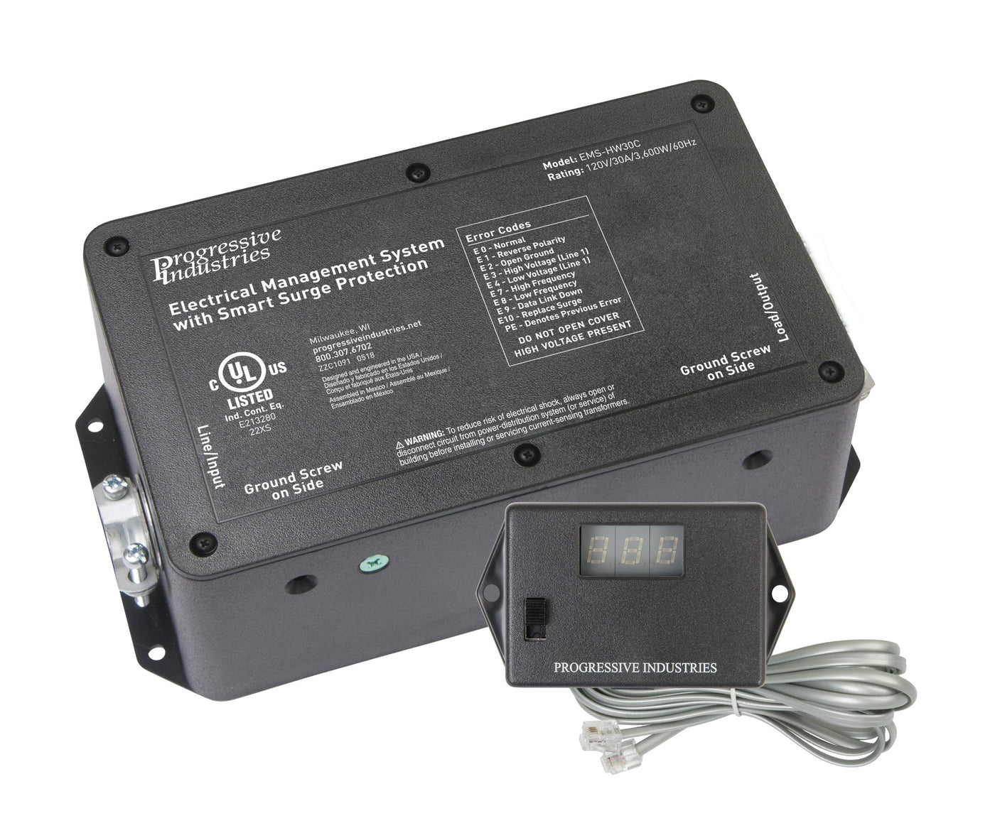 Progressive Industries 30 Amp Heavy Duty Rv Surge Protector Ems — Whole House Surge Protection W/Integrated Display And Fault Detection — Ems-Hw30C