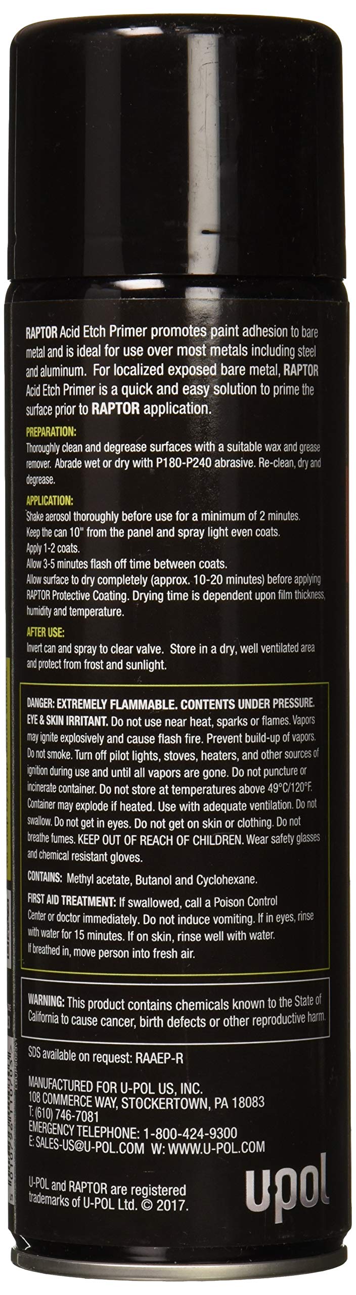 Q: Is RAPTOR Etch Primer safe to use indoors?A: RAPTOR Etch Primer is classified as an aerosol and is flammable, so it is recommended to use it in a well-ventilated area and avoid indoor use unless proper safety precautions are taken.