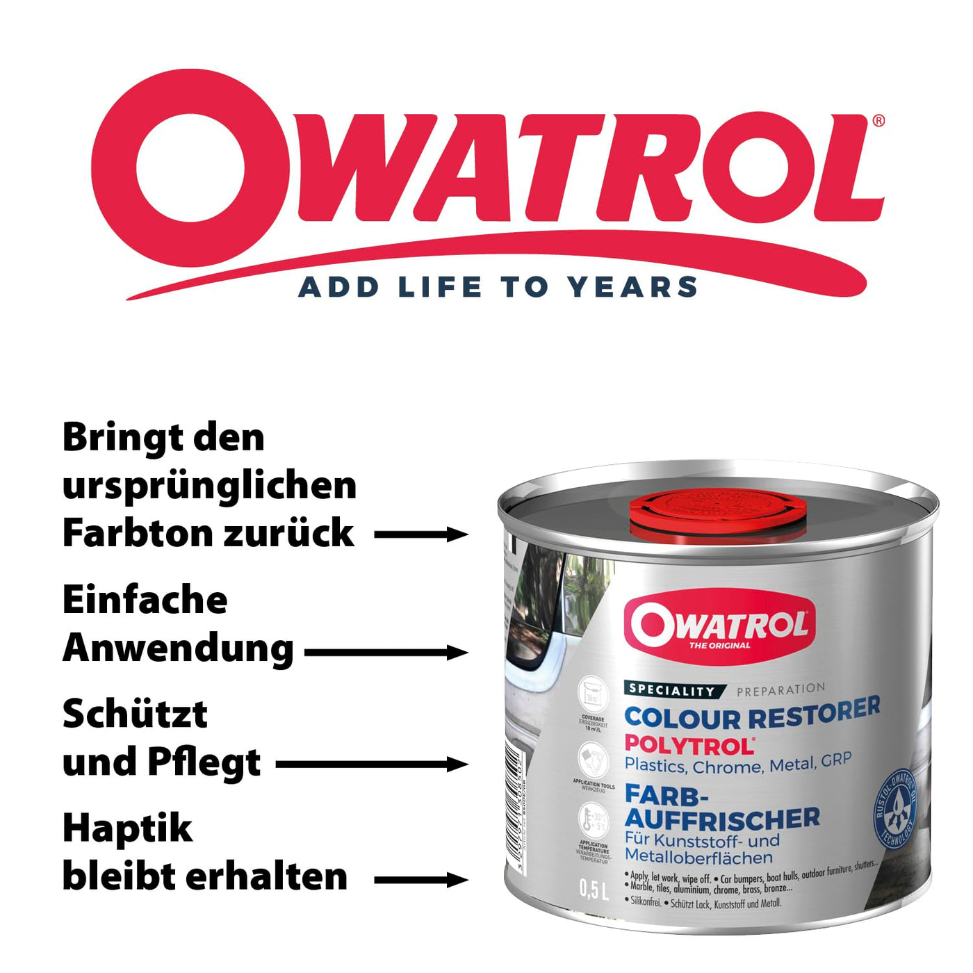 Owatrol Color Restorer, Car Bumpers, Chrome, Plastic Restorer For Cars Penetrating Oil For Multipurpose, Metals To Restore Faded Plastic And Surfaces Polytrol (1,6 Us Quart)