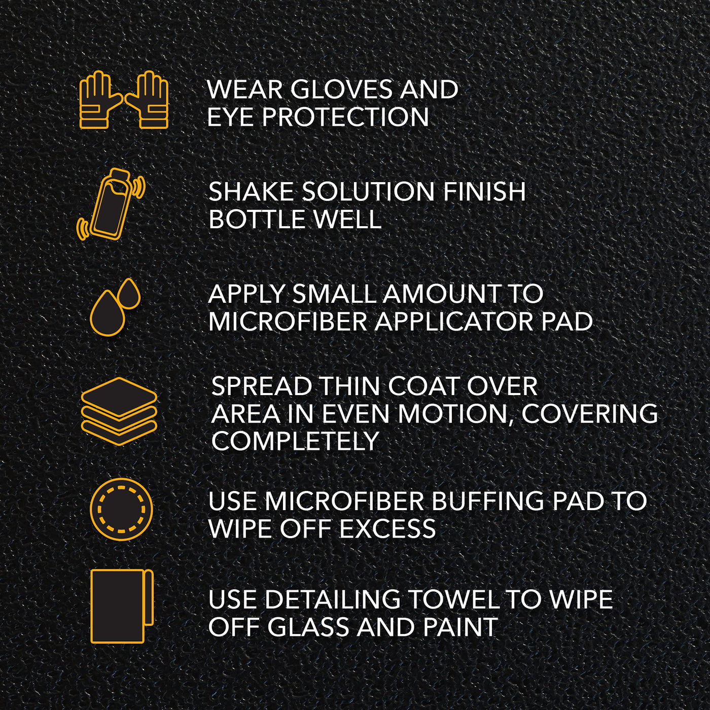 Q: What is the best way to apply Solution Finish Trim Restorer?A: For optimal results, apply Solution Finish Trim Restorer using a clean cloth or towel. Follow the instructions provided on the bottle for safe and proper application to ensure an even coating.