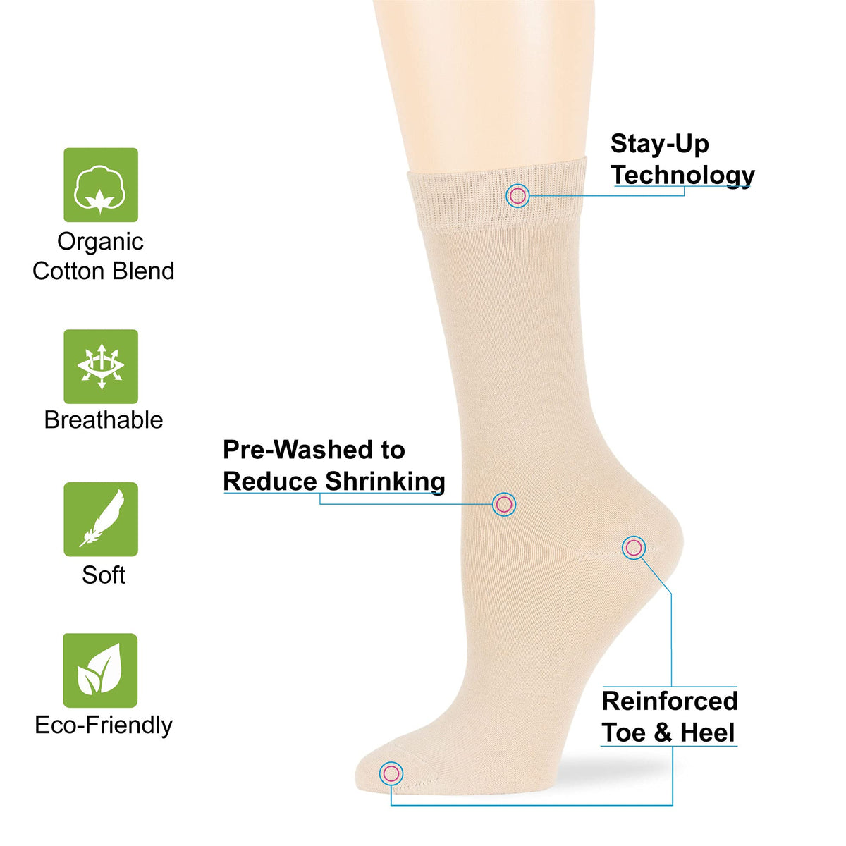 Q: What colors are available for these women's cotton socks?A: The 7BIGSTARS socks are available in a variety of colors including Black, Olive Green, Burgundy, Dark Grey, Light Grey, Dark Navy, Dark Brown, Brown, Golden Brown, Beige, Khaki, Light Navy, Denim Blue, Red, and White.